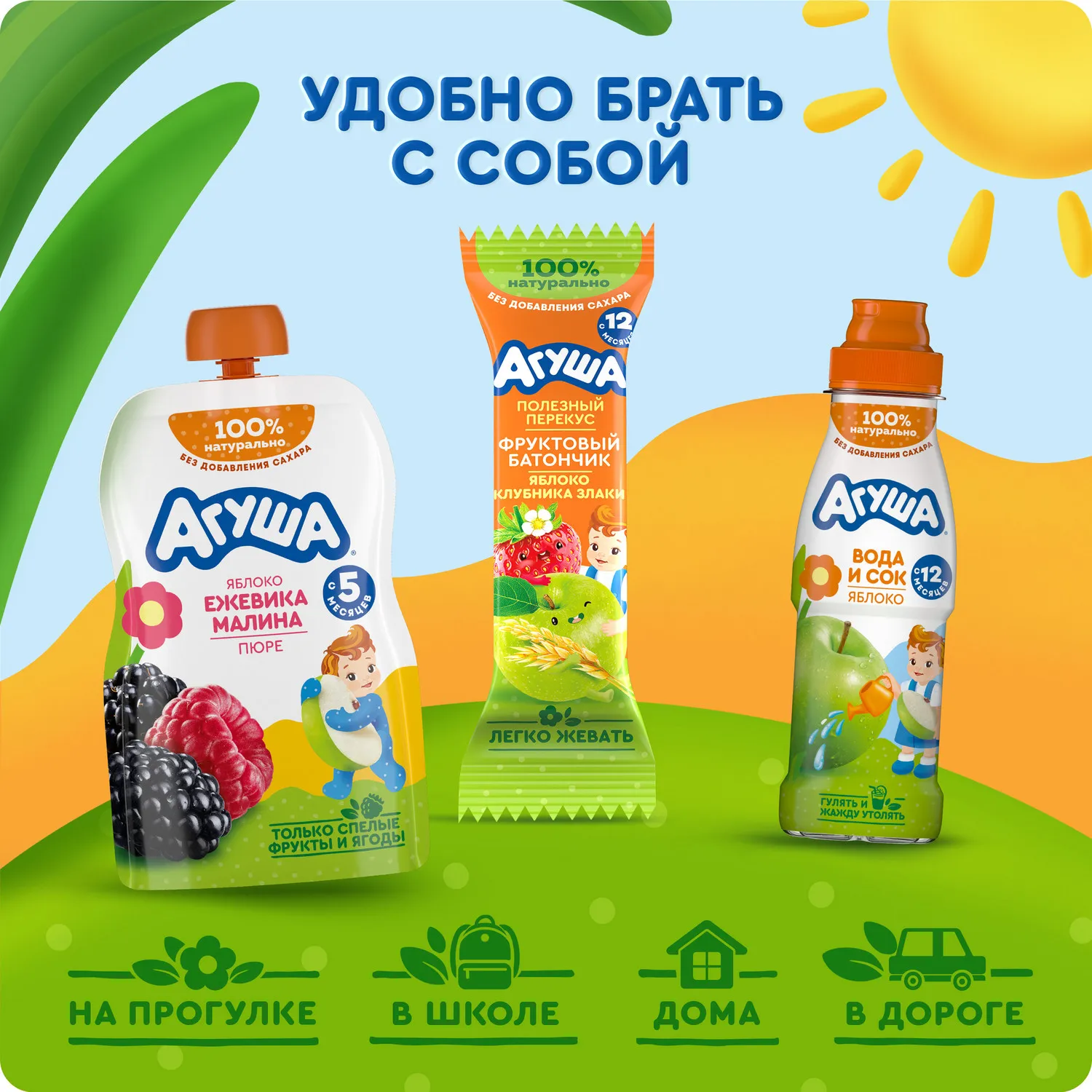 Помимо детских батончиков «Агуша» предлагает детские хлебцы и фруктовые пастилки «Агуша». Фрукты и злаки – это важная часть рациона подрастающего малыша.