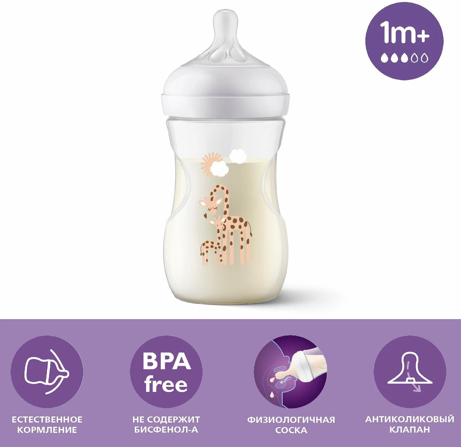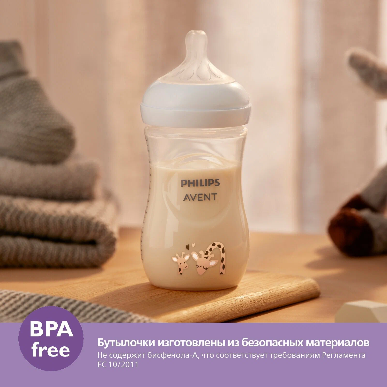 Бутылочки серии Natural Response изготовлены из безопасных материалов, не содержащих бисфенол-A⁴.