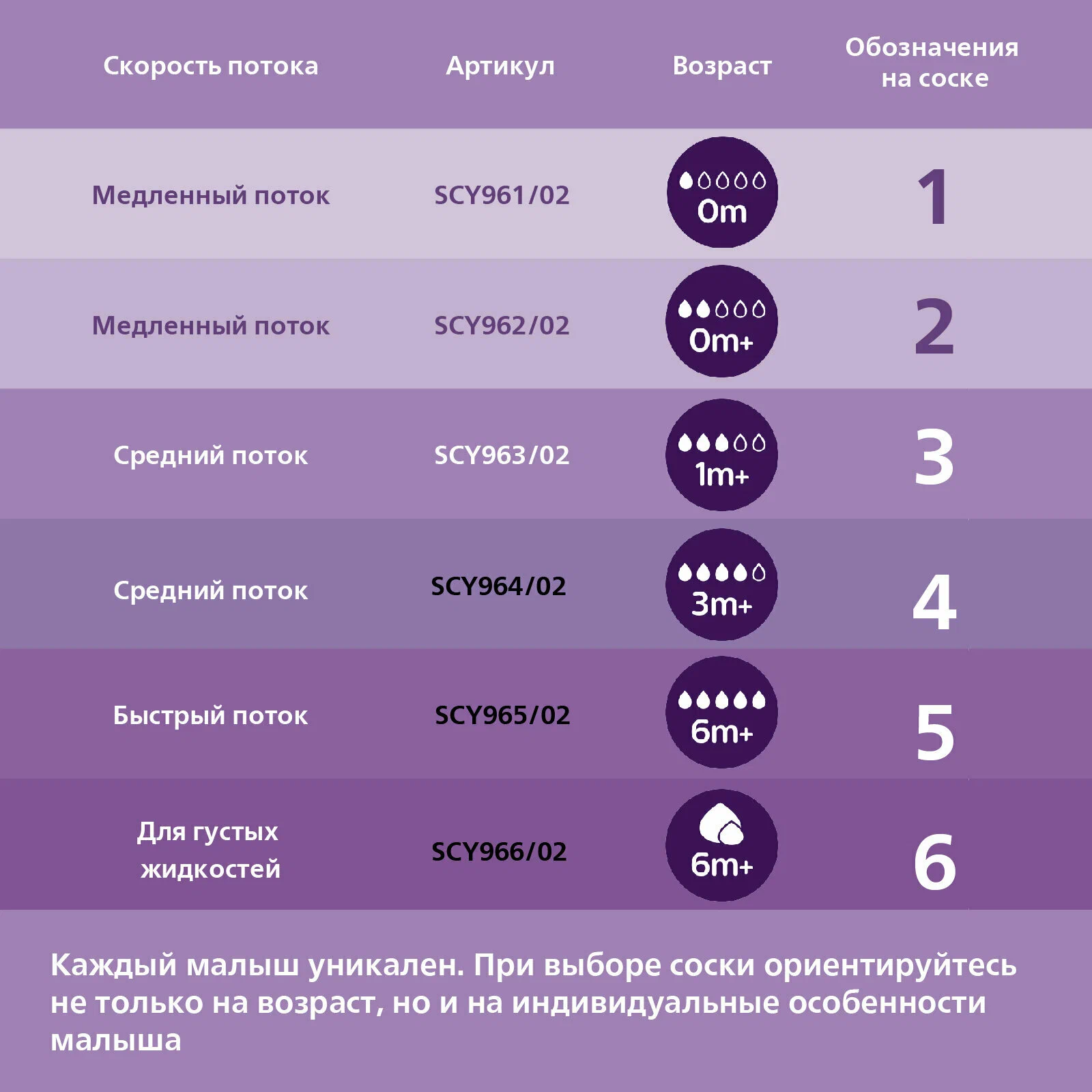 Все соски Natural Response изготовлены из мягкого силикона. Выберите соску, подходящую вашему малышу. Все дети требуют особого подхода при кормлении и держат комфортный им темп. Соски Philips Avent разработаны с разной скоростью потока, чтобы вы могли найти оптимальный вариант для вашего малыша. Все соски Natural Response изготовлены из мягкого силикона. 96% случаев, когда ребенок принимает соску Natural Response³.