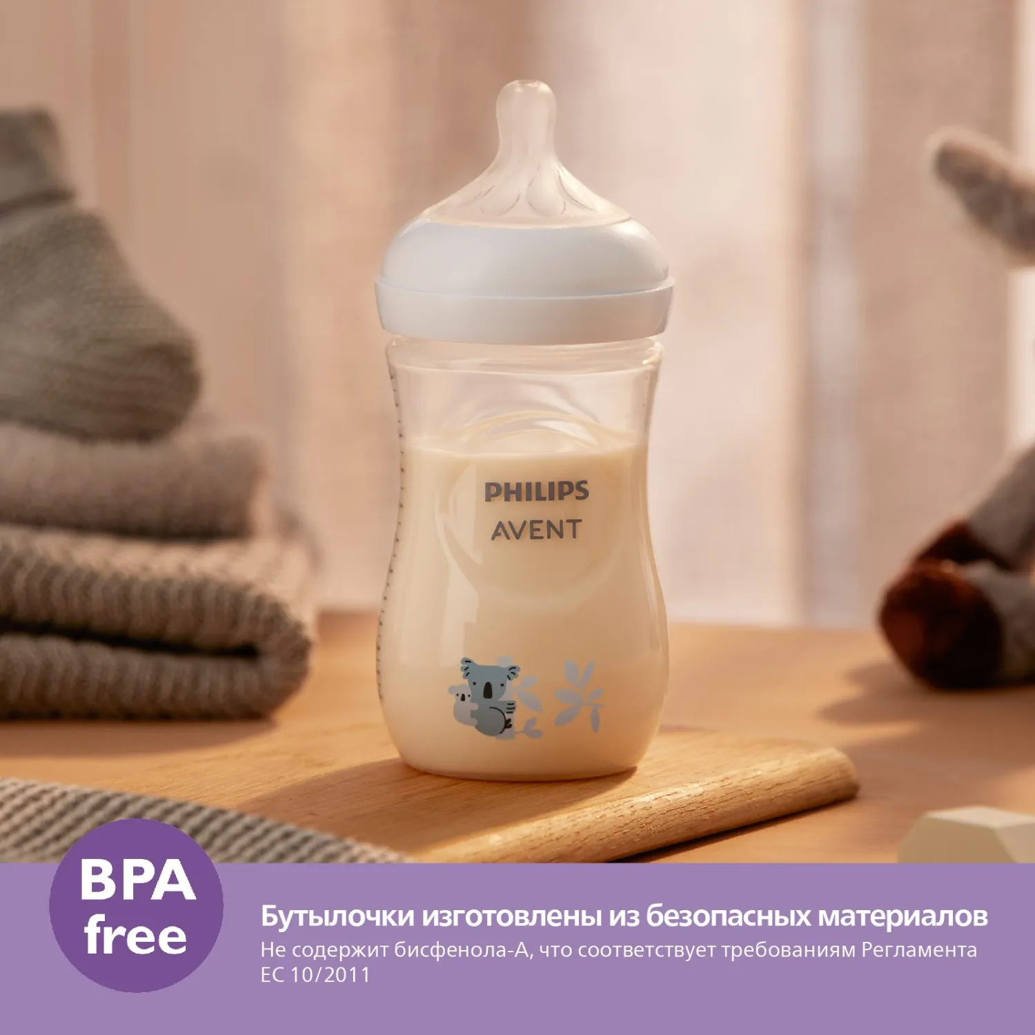Бутылочки серии Natural Response изготовлены из безопасных материалов, не содержащих бисфенол-A⁴.
