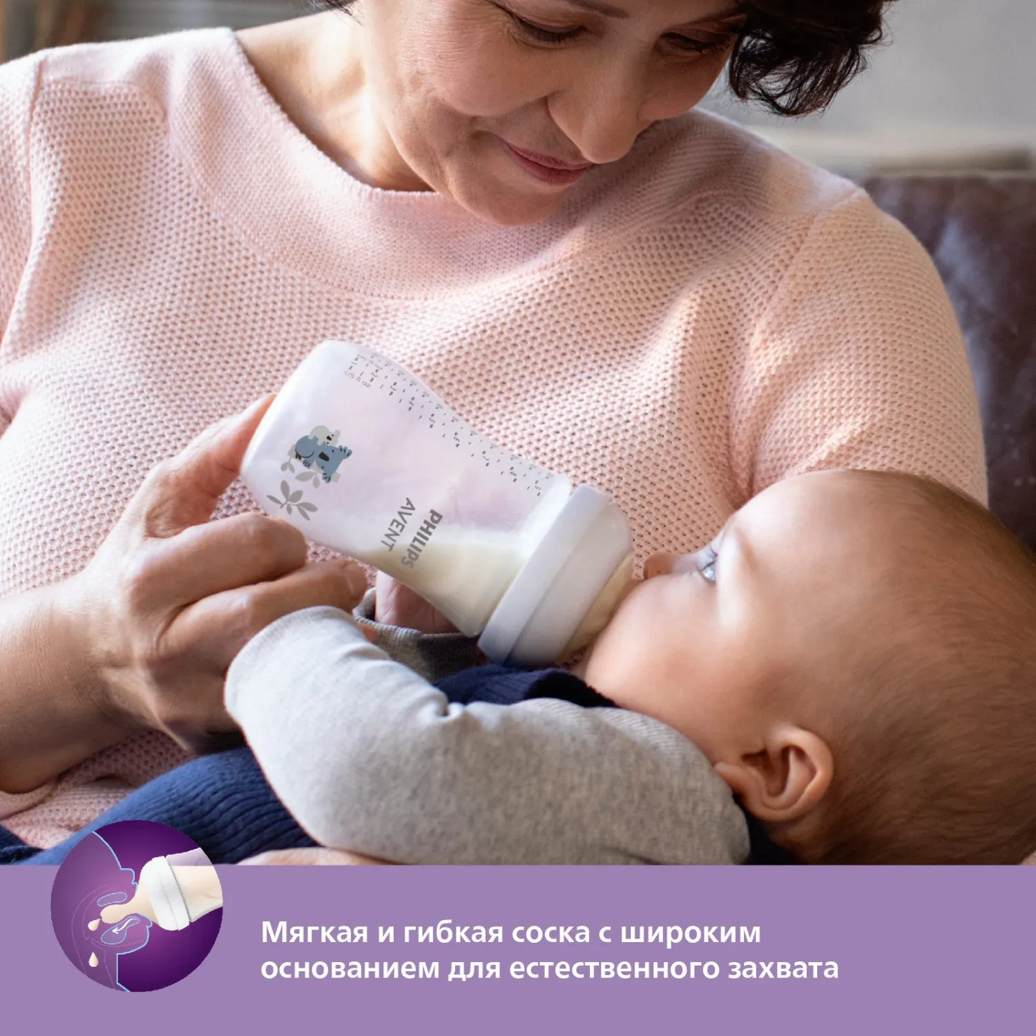 Наши бутылочки Natural Response отличаются от предыдущих серий конструкцией соски. Как и с кормлением грудью, вам может потребоваться несколько дней, чтобы приспособиться к ней. Это нормально.