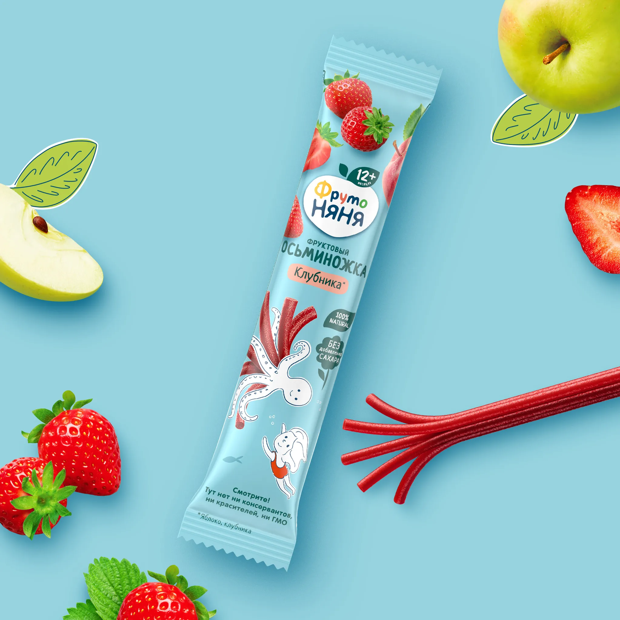 Фруктовый осьминожка от ФрутоНяня — это любимое малышами натуральное лакомство. В составе только фрукты и ягоды без добавления сахара, красителей и ароматизаторов. А благодаря необычной форме, с нашими фруктовыми осьминожками не только вкусно, но и интересно!