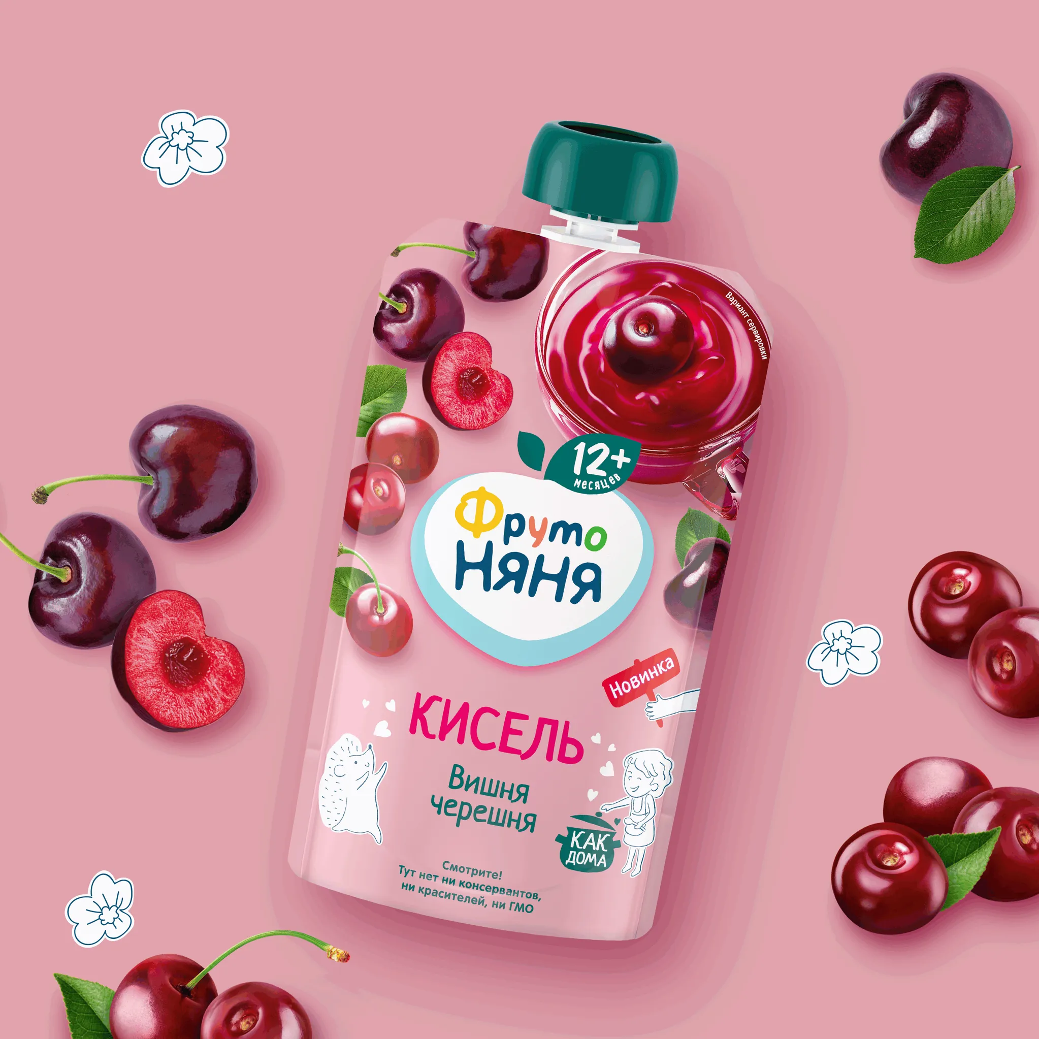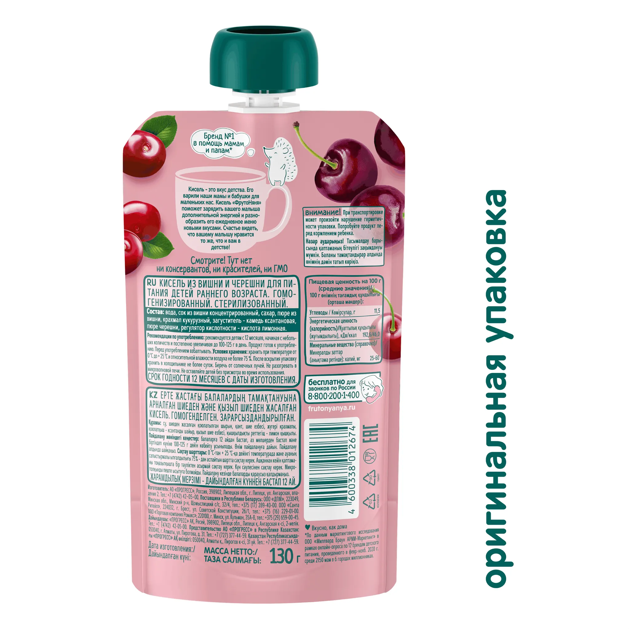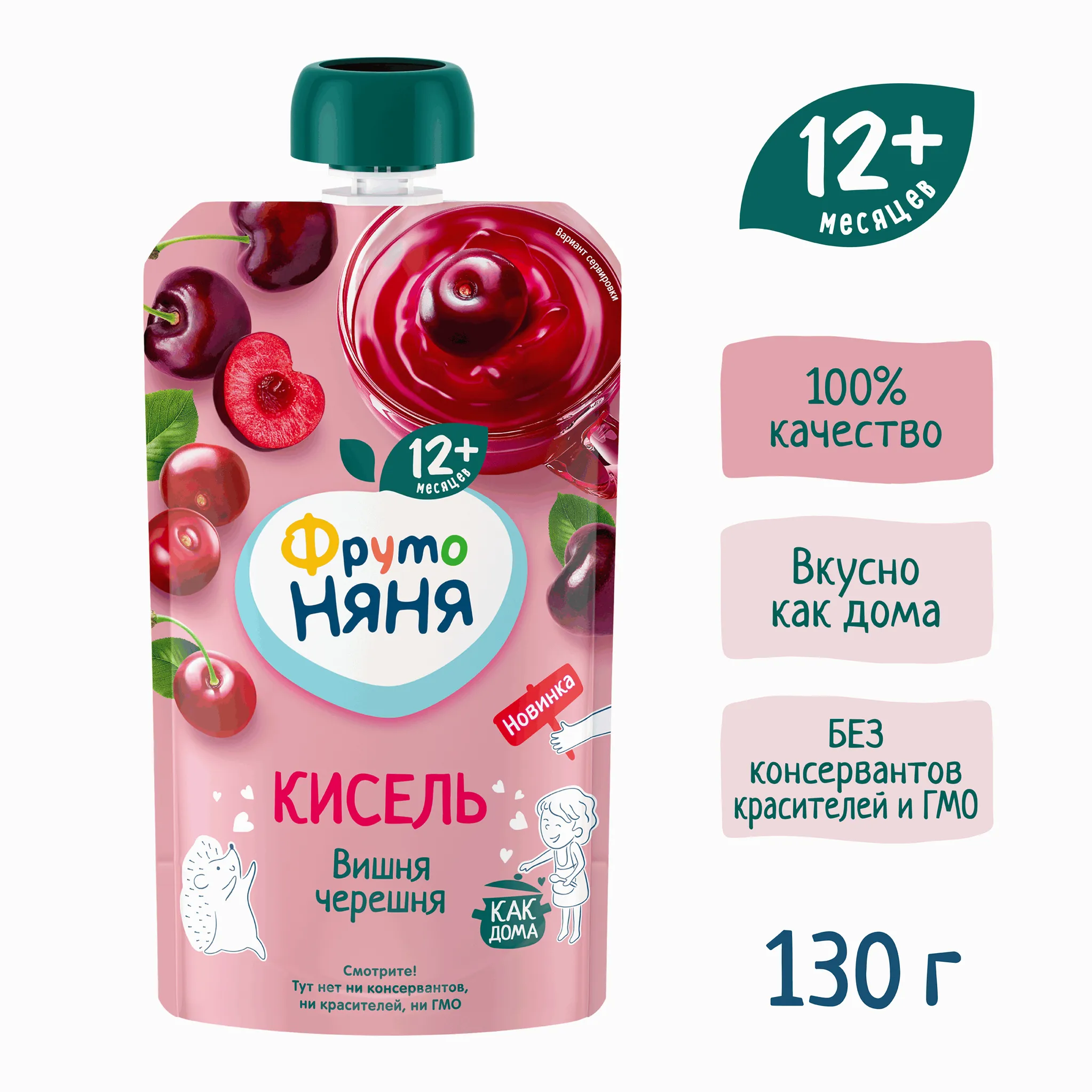 Вкус киселя знаком всем с детства. Теперь вы можете познакомить с ним вашего малыша. Кисель из вишни и черешни «ФрутоНяня» – это яркий и насыщенный вкус спелой вишни и сладкой черешни, который разнообразит рацион ребенка от года. Каждая ягодка была собрана с любовью и заботой о вашем малыше. Кисель приготовлен по традиционному рецепту, поэтому он вкусный, как дома. Возьмите удобную мягкую упаковку киселя из вишни и черешни от «ФрутоНяни» на прогулку или в гости, чтобы угостить малыша, поднять ему настроение и зарядить энергией.