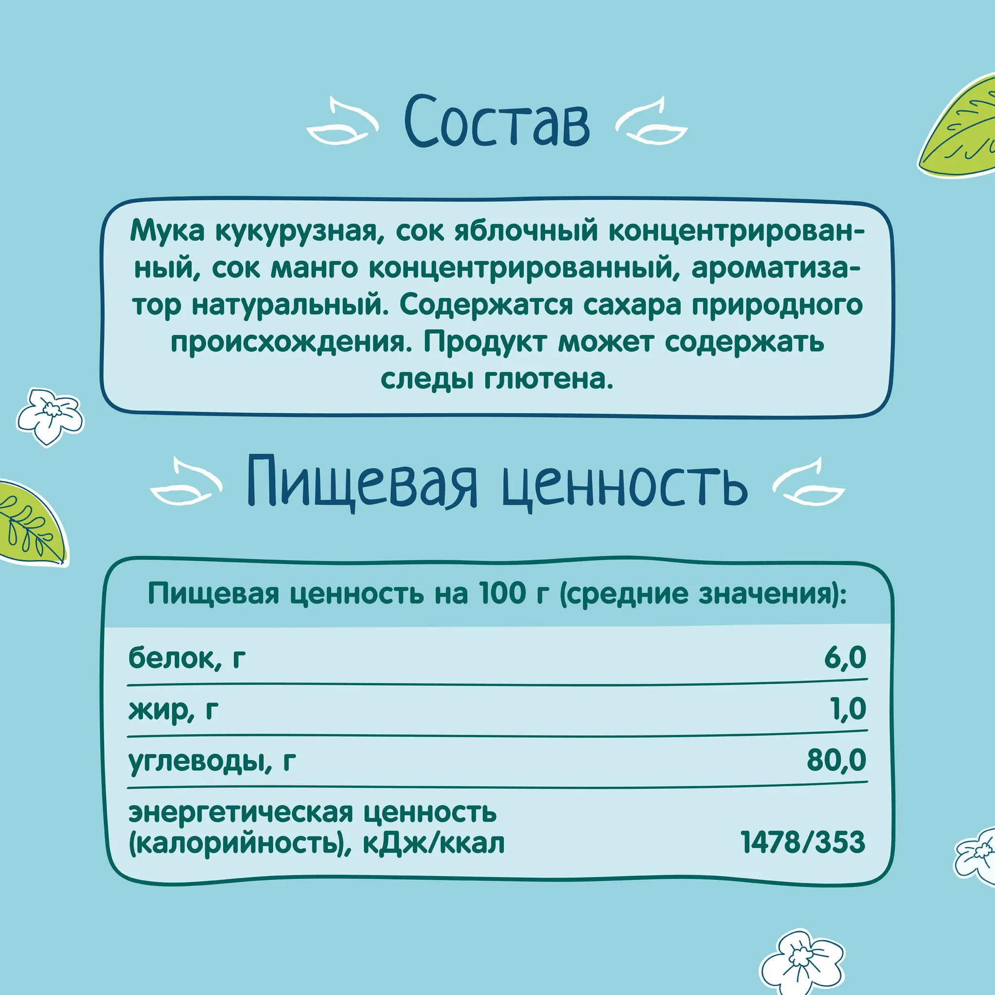 Мука кукурузная, сок яблочный концентрированный, сок манго концентрированный, ароматизатор натуральный