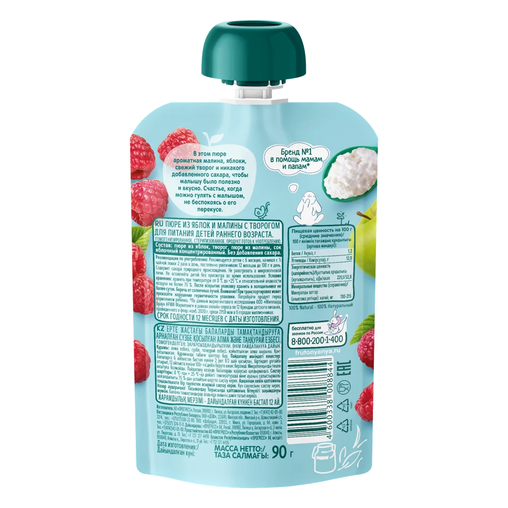 Фруктовое пюре с натуральным творогом «ФрутоНяня» разработано специально для того, чтобы разнообразить рацион вашего малыша. В нём сочетается вкус отборных спелых ягод, фруктов и польза натурального творога, необходимого для гармоничного роста и развития малыша.