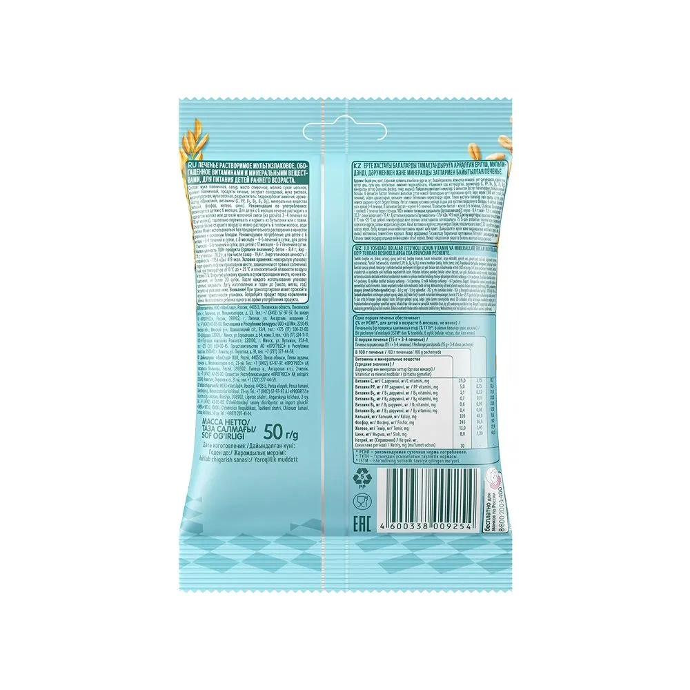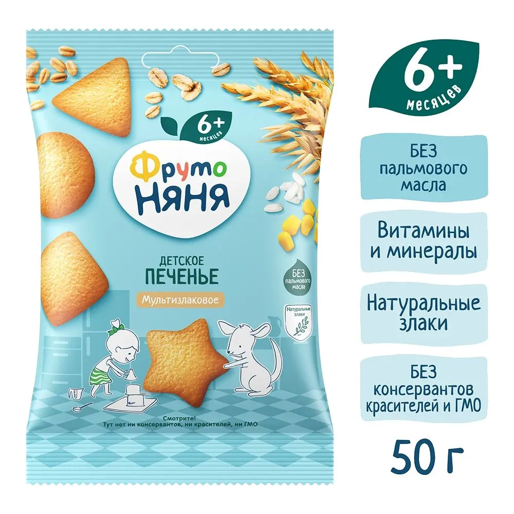 "ФрутоНяня" Печенье 120г растворимое мультизлаковое, обогащенное витаминами и минеральными веществами для питания детей раннего возраста.