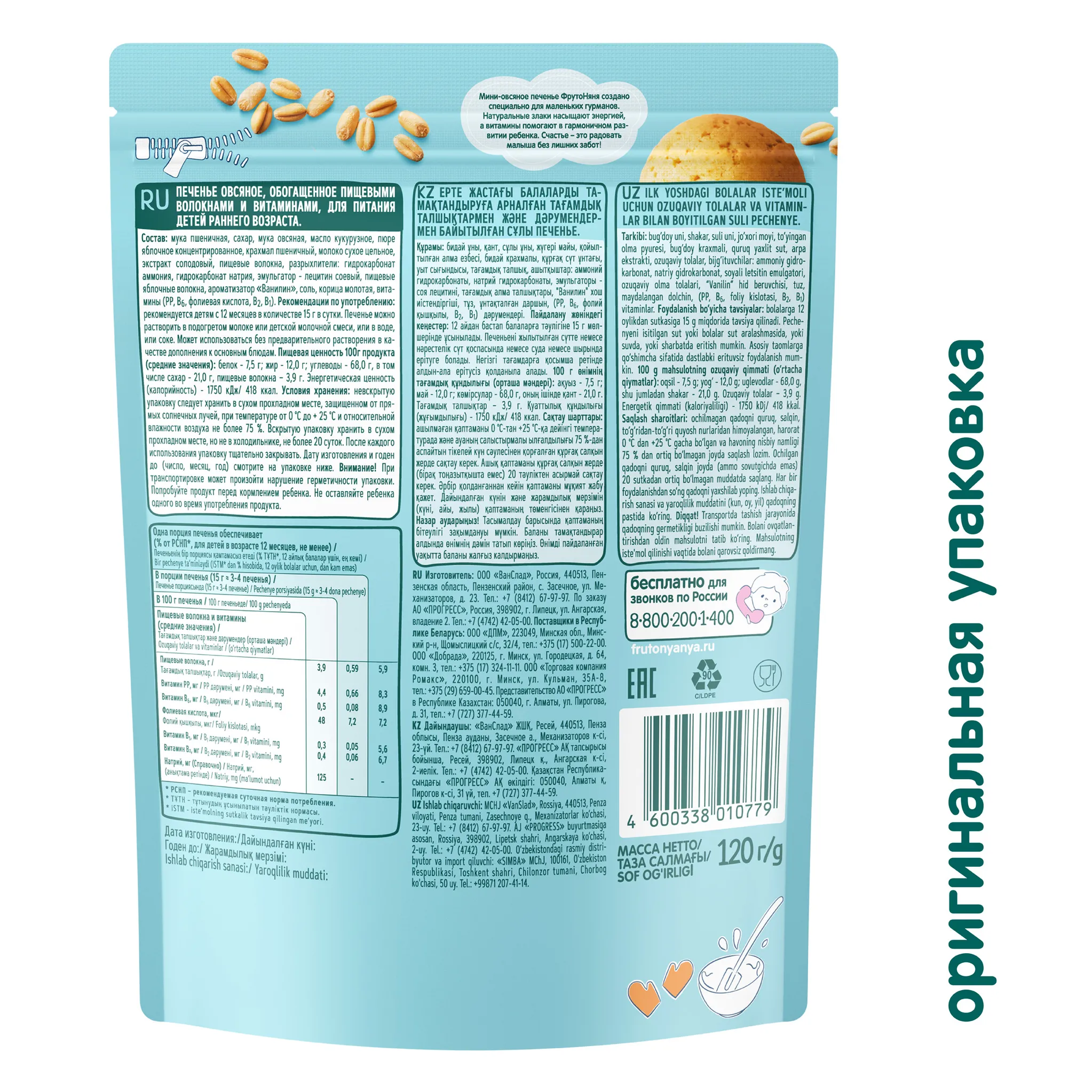 "ФрутоНяня" Печенье 120г растворимое овсяное, обогащенное витаминами и минеральными веществами для питания детей раннего возраста.