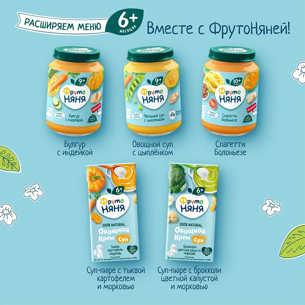 Новинка ФрутоНяня «Спагетти болоньезе» разработана специально для маленьких гурманов. Поможет малышу научиться жевать благодаря кусочкам в составе.