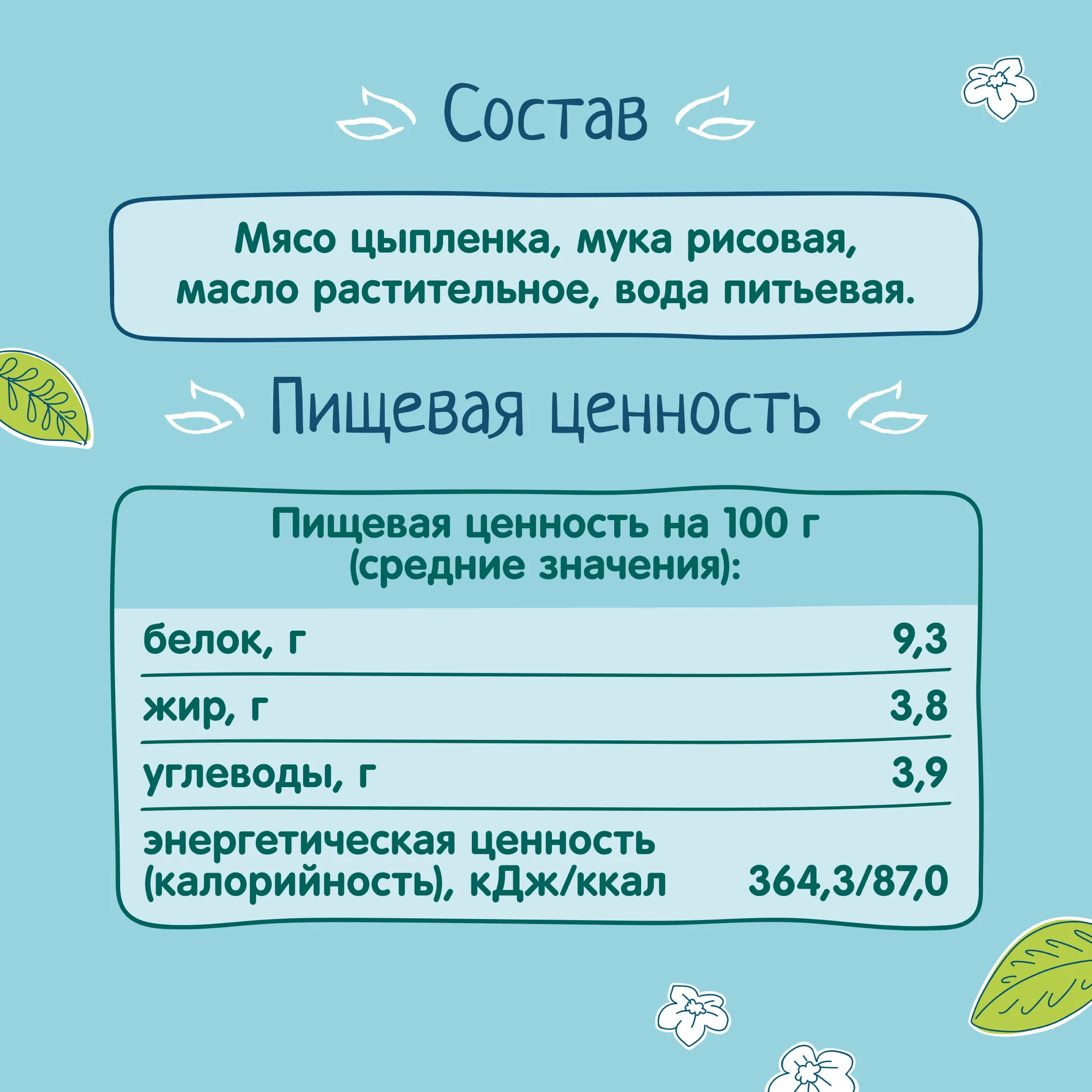 Мясные пюре – это важный продукт в ежедневном рационе ребенка старше 6 месяцев, источник белка и незаменимых аминокислот, необходимых для строительства организма малыша. Пюре «ФрутоНяня» из мяса цыплят разработано специально для того, чтобы каждый обед вашего малыша не только насыщал его, но и помогал полноценному и гармоничному росту.