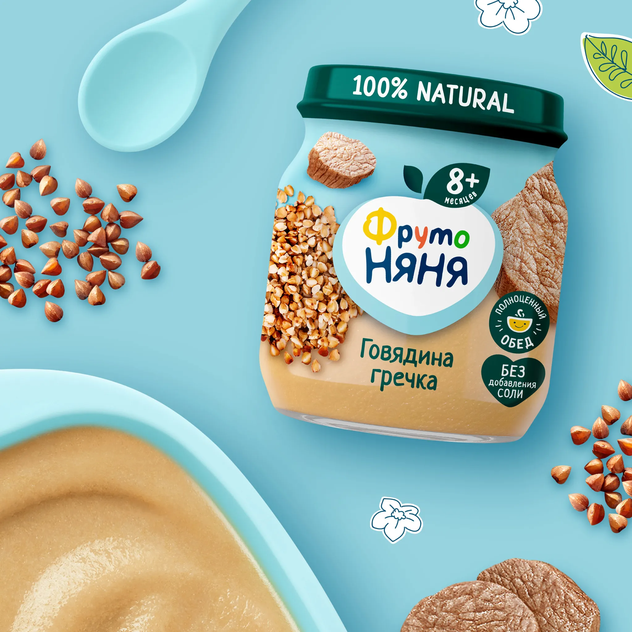 Пюре «ФрутоНяня» из говядины с гречкой — сочетание свежих овощей, питательных злаков и натурального мяса. Добавьте мясо-растительное пюре «ФрутоНяня» в рацион вашего малыша от 8 месяцев, чтобы он рос крепким и здоровым. В составе пюре говядина, гречневая крупа, морковь и ничего лишнего. Поэтому оно такое вкусное и полезное! Пюре подходит в качестве полноценного приема пищи, например, на обед или ужин и поможет зарядить малыша энергией и отличным настроением надолго.
