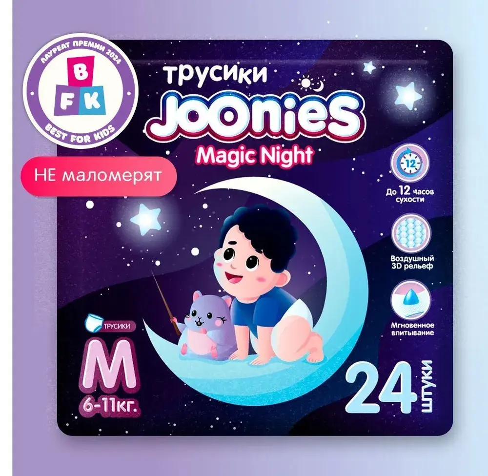 Ночные супервпитывающие подгузники-трусики Joonies Magic Night - это долгожданная новинка от ™Joonies.