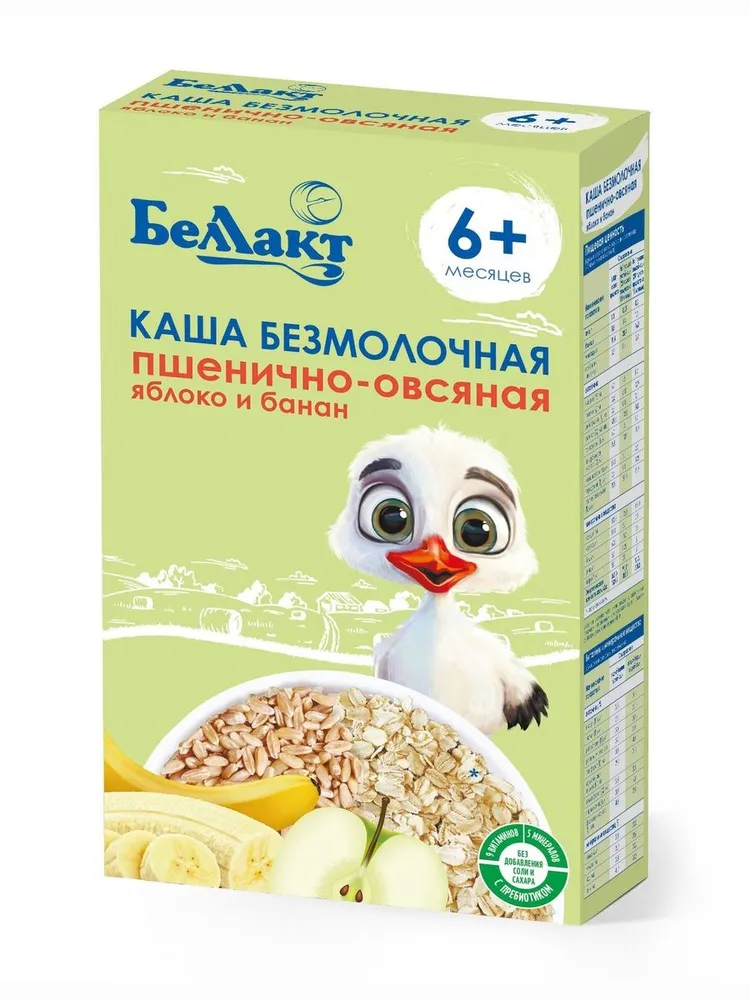 Мука пшеничная; мука овсяная; мальтодекстрин; пребиотик – инулин; фруктовый порошок «Яблоко» (концентрированный яблочный сок, мальтодекстрин); фруктовый порошок «Банан» (концентрат бананового сока, пюре банана, мальтодекстрин); минеральное вещество - кальция хлорид; премикс витаминно-минеральный (С (L-аскорбат натрия), РР (никотинамид), Е (DL-альфа токоферола ацетат), А (ретинола ацетат), В1 (тиамина мононитрат), В2 (рибофлавин), Д3 (холекальциферол), В6 (пиридоксин гидрохлорид), В9 (фолиевая кислота), железа (III) пирофосфат, йодид калия, цинка сульфат)
