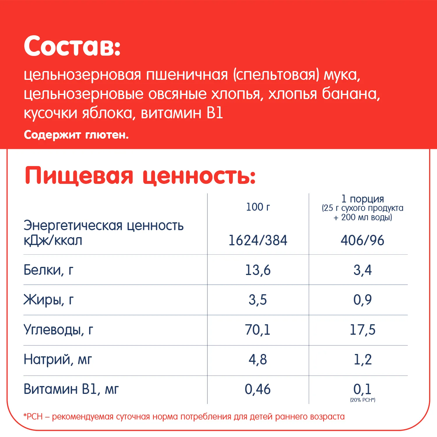 - Изготовлена из высококачественного цельного зерна, предназначенного для питания детей