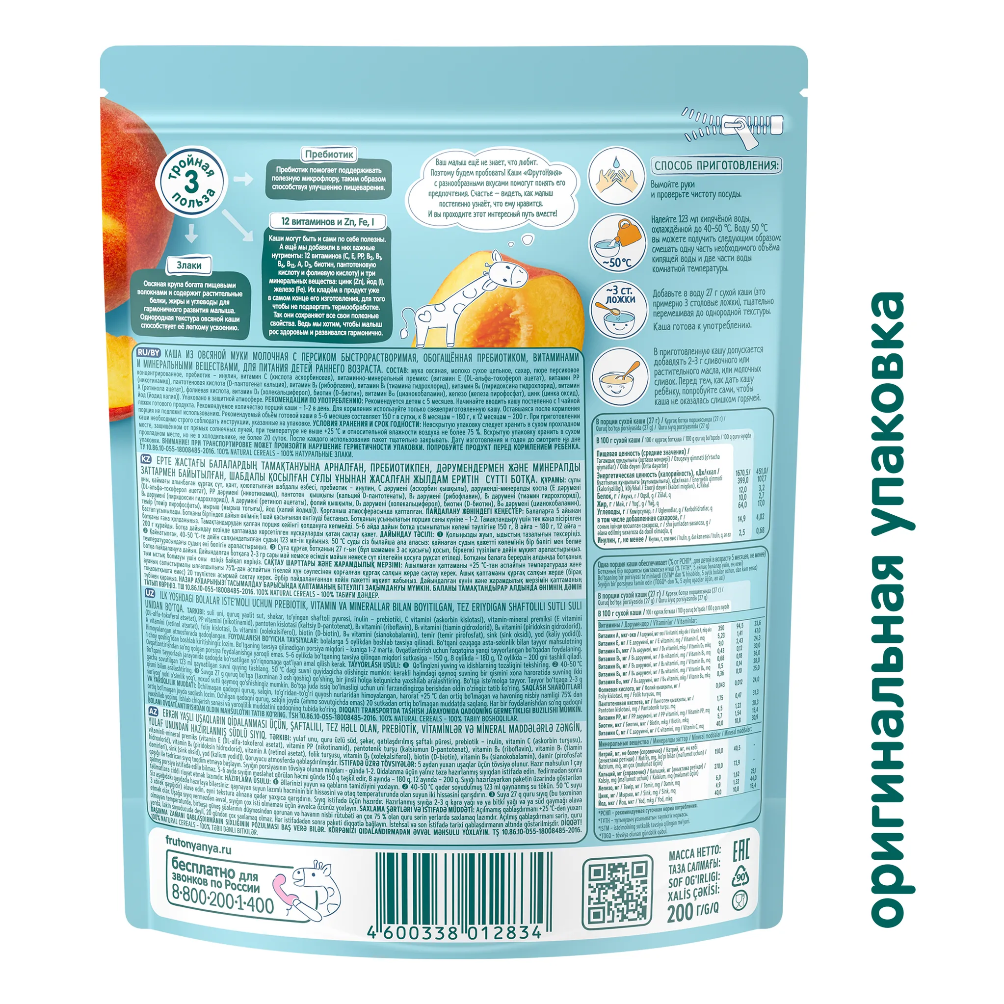 Каша из овсяной муки молочная с персиком быстрорастворимая, обогащенная пребиотиком, витаминами и минеральными веществами, для питания детей раннего возраста