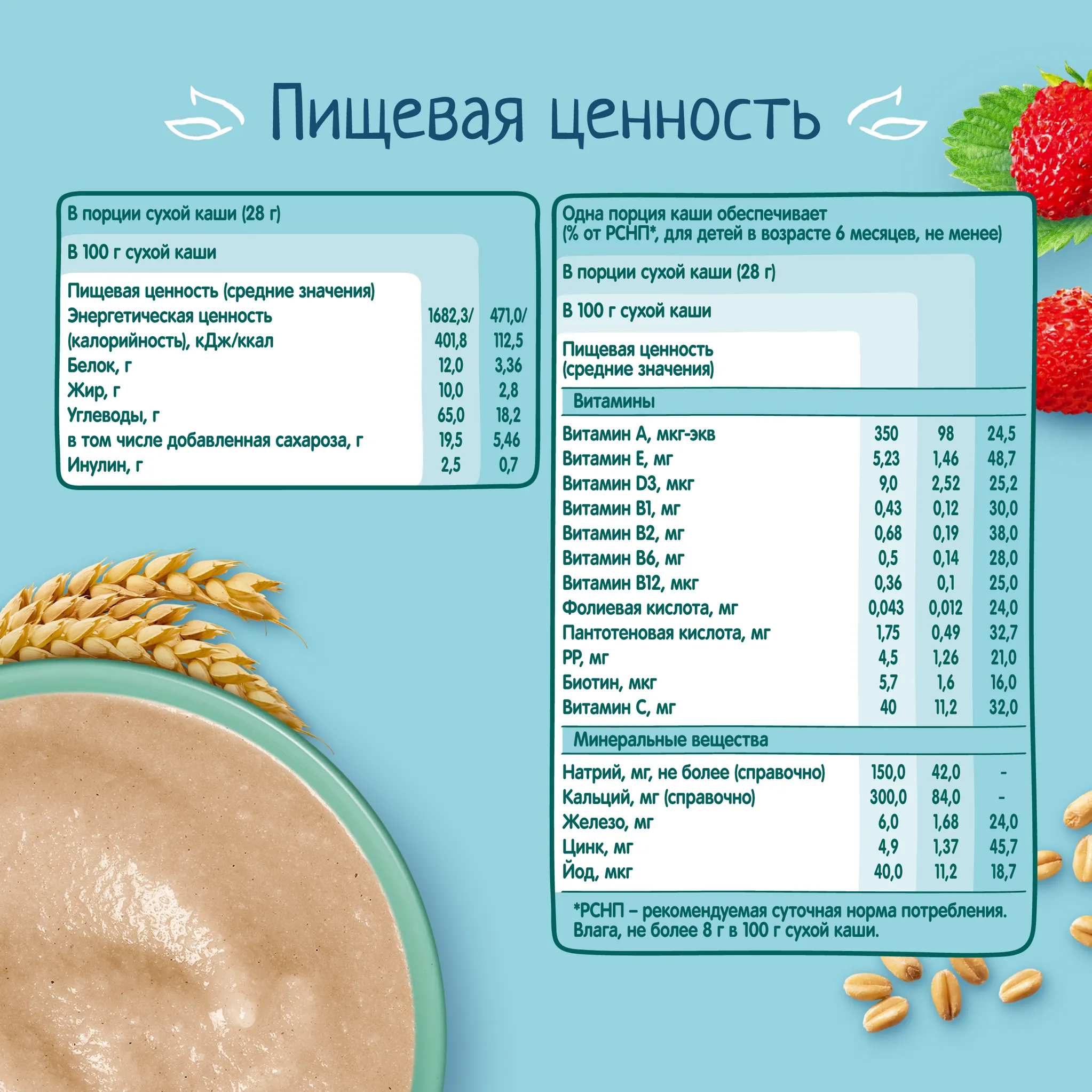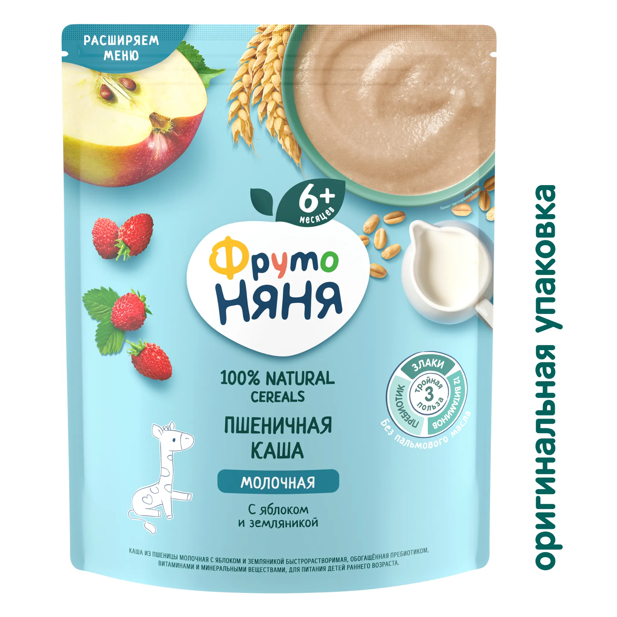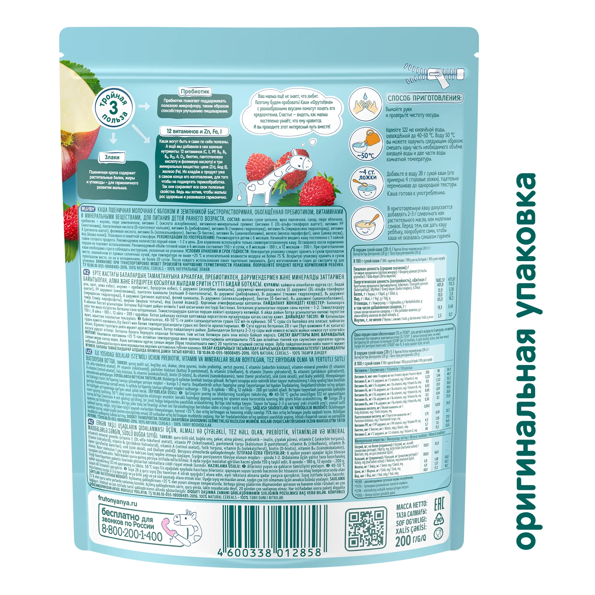Каша пшеничная молочная с яблоком и земляникой быстрорастворимая, обогащенная пребиотиком, витаминами и минеральными веществами, для питания детей раннего возраста