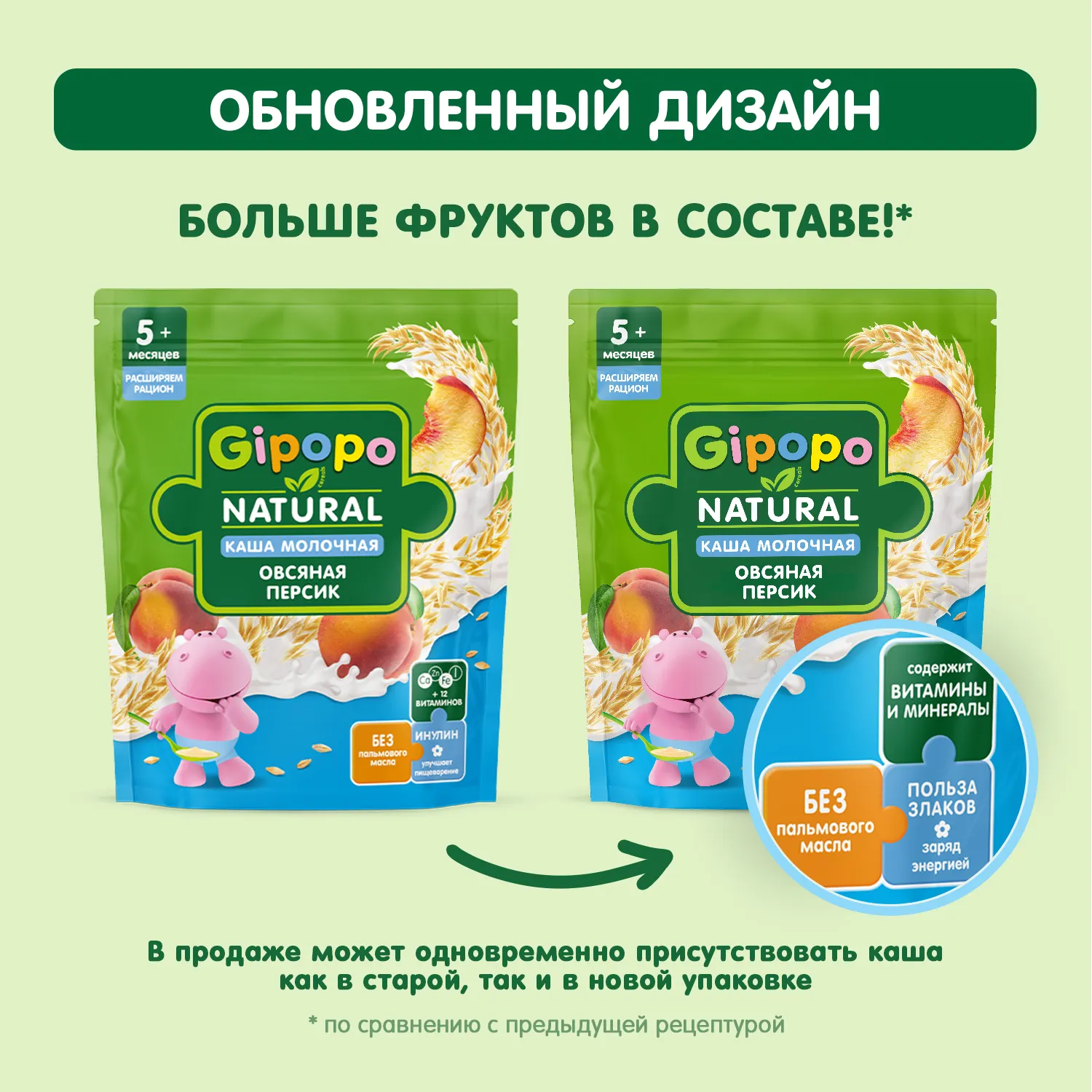 Молочная овсяная каша с фруктами GIPOPO РАСШИРЯЕМ РАЦИОН является источником белка и содержит всё необходимое для активного роста и развития малыша.