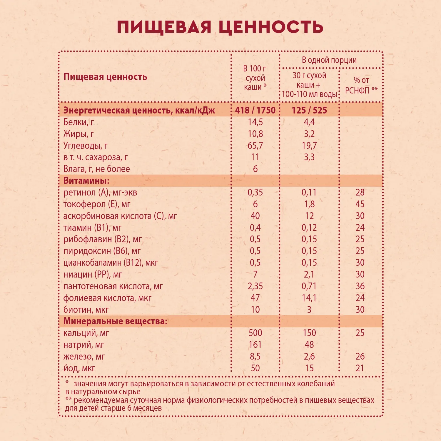 - 100% натуральные злаки являются источником углеводов, растительного белка и пищевых волокон.