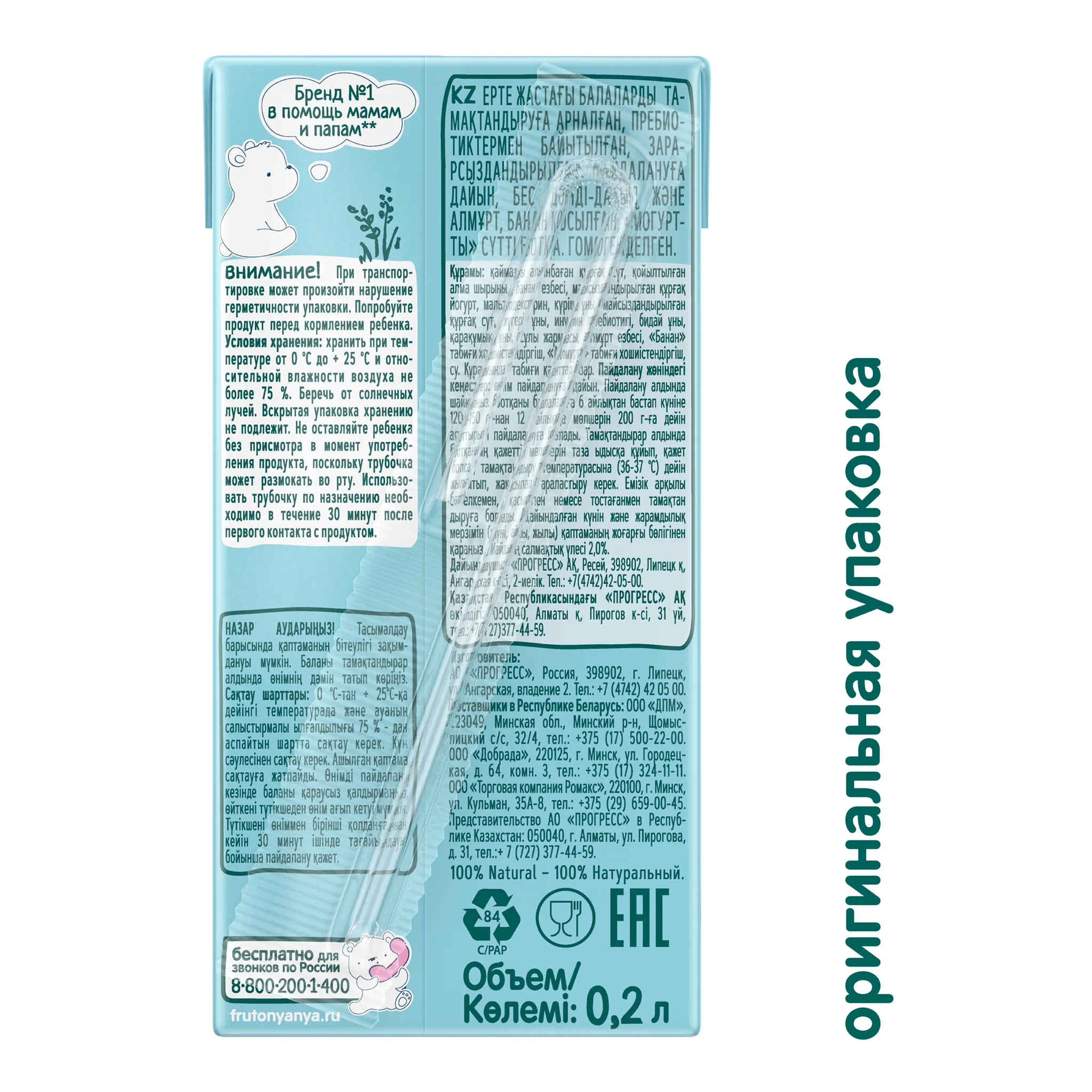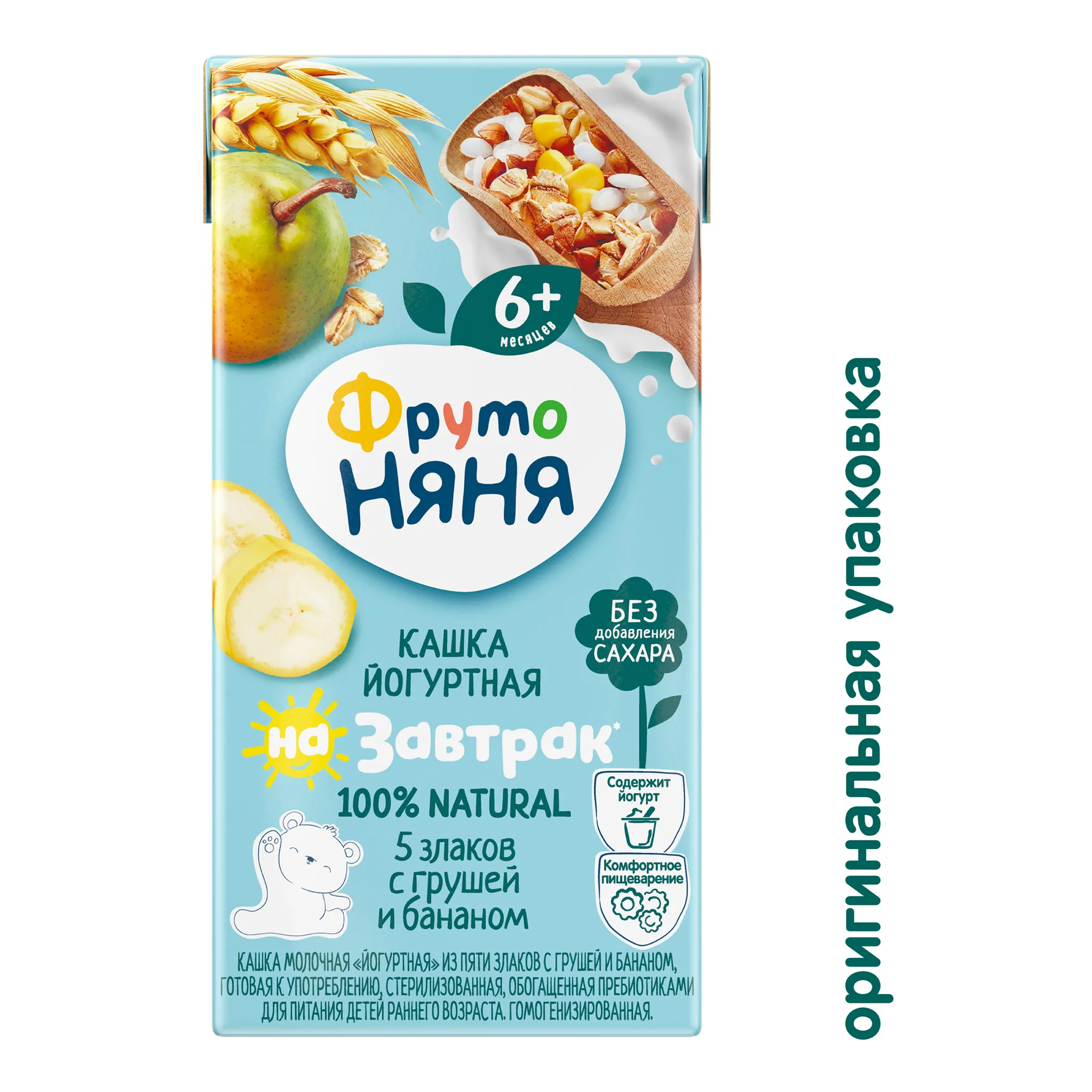 Кашка молочная «йогуртная» из пяти злаков с грушей и бананом, готовая к употреблению, стерилизованная, обогащенная пребиотиками, с фруктозой для питания детей раннего возраста