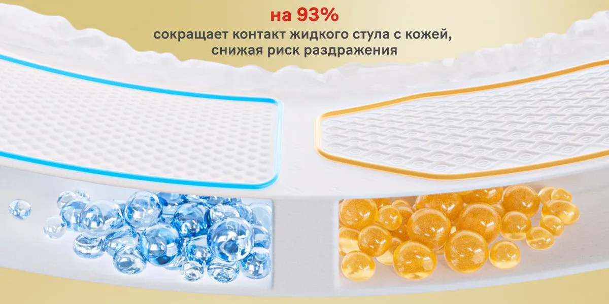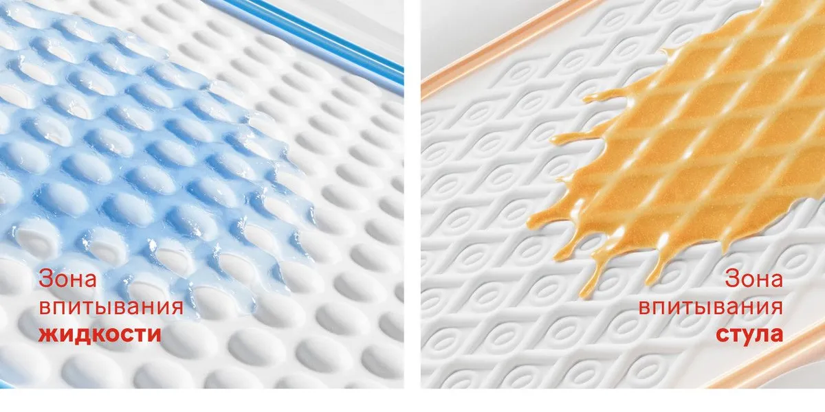 - Специальная зона для быстрого впитывания жидкого стула.