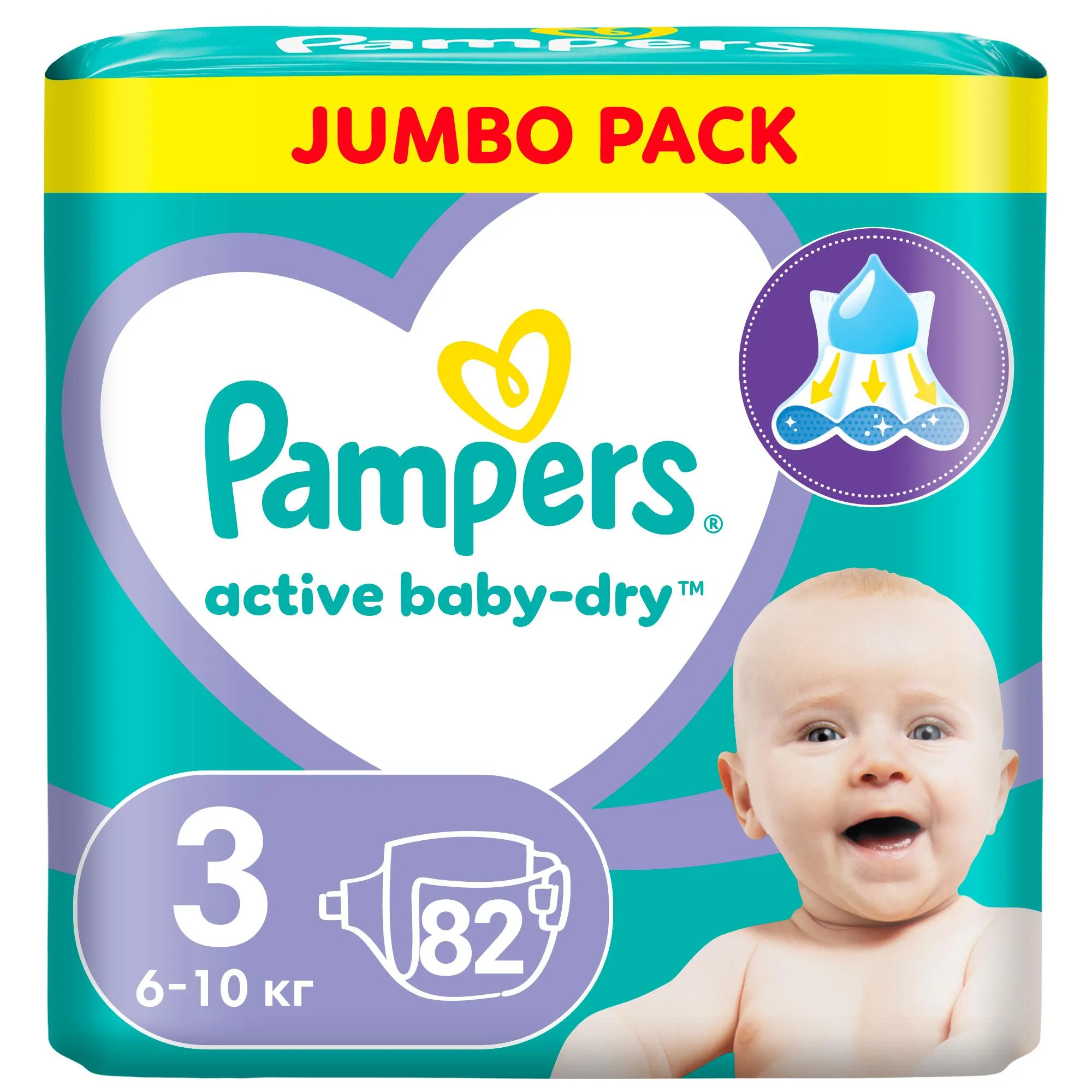 Подгузники Pampers Active Baby-Dry с воздушными каналами подарят сухость на всю ночь коже малыша. Циркуляция воздуха внутри подгузника позволяет коже малыша оставаться сухой и дышать, а дополнительный слой помогает равномерно распределять влагу внутри подгузника.