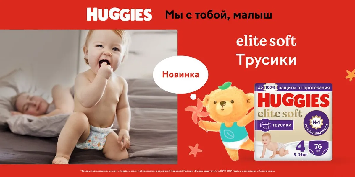 «Супердышащие» трусики нового поколения HUGGIES Elite Soft для нежной заботы о коже!