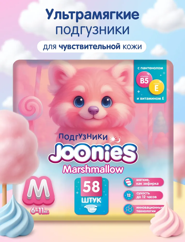- JOONIES MARSHMALLOW ПОДГУЗНИКИ ДЛЯ ДЕТЕЙ, весом от 6 до 11 кг, размер M - мягкие, как зефирка