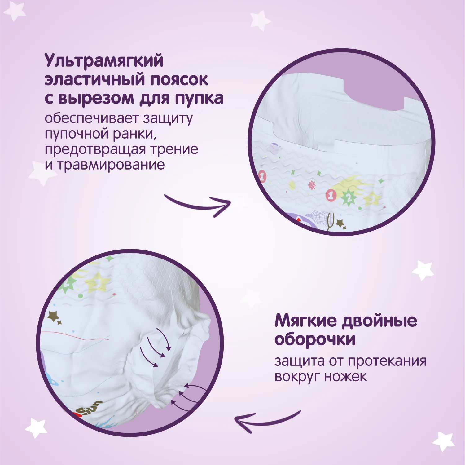 - Новый двойной дышащий нижний слой моментально распределяет влагу внутри и не дает ей слеживаться, бережно защищает кожу малыша от возникновения раздражений, оставляя ее сухой и чистой.