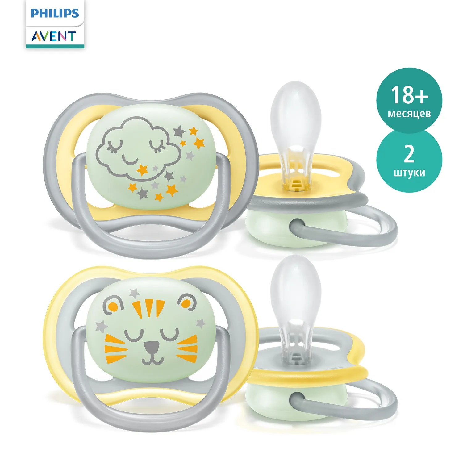 Светящаяся соска-пустышка Philips Avent ultra air night SCF376/01 силиконовая, с футляром для хранения и стерилизации, 18 мес +, 2 шт