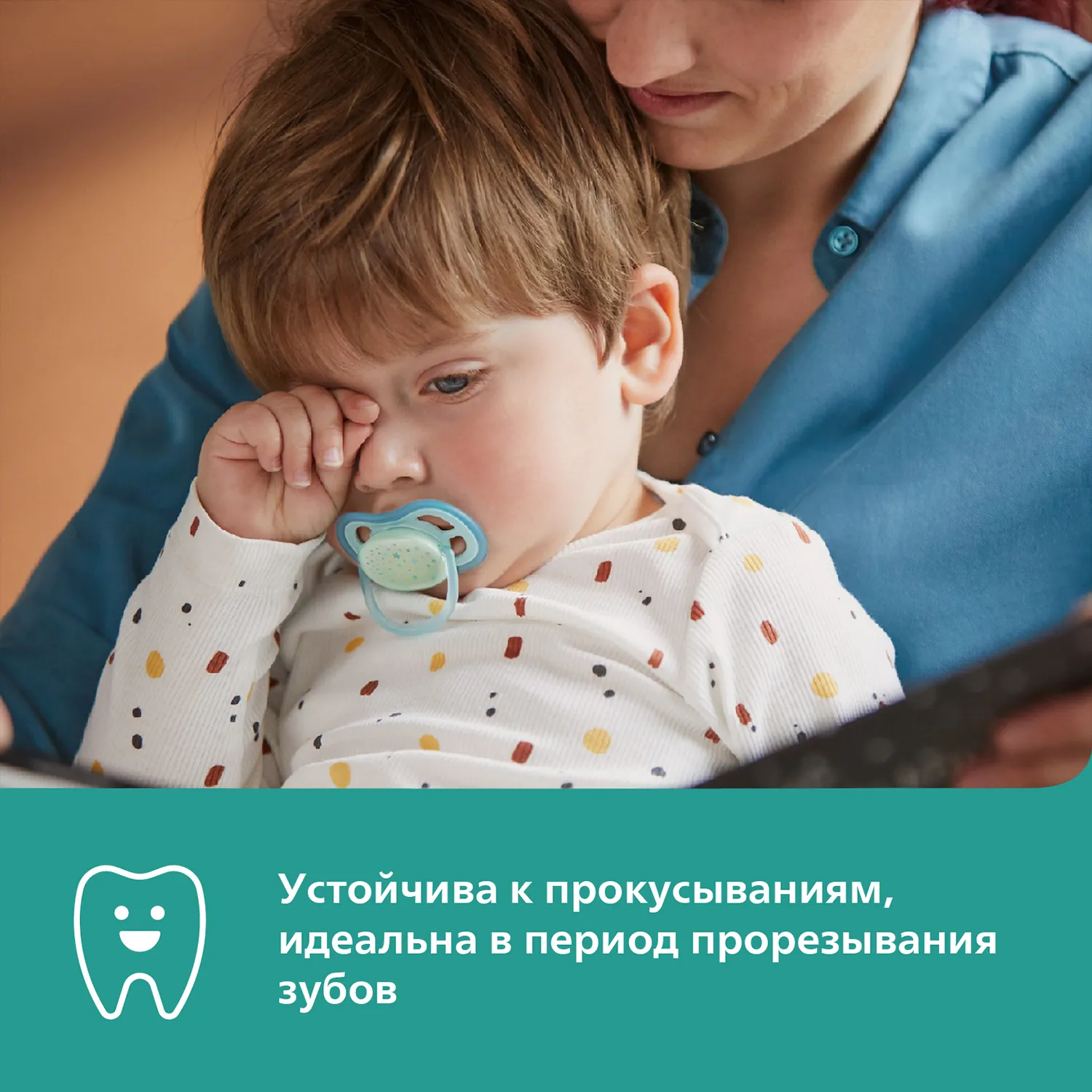 Со светящейся в темноте кнопкой18+мес.Ортодонтические, без бисфенола-А²2шт. в упаковкеПозволяет коже дышать