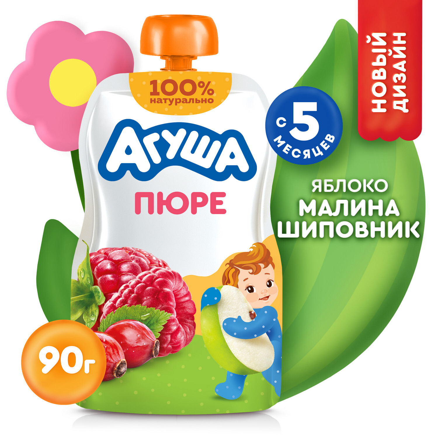 Детское фруктово-ягодное пюре Агуша с яблоком, шиповником и малиной разработано для питания детей с 5 месяцев. Минимально допустимый возраст знакомства с фруктовым пюре определяется рекомендациями по срокам введения конкретных фруктов. Начинать вводить фрукты в прикорм необходимо с гипоаллергенных монокомпонентных пюре из яблок или груш и уже после того, как малыш познакомился с детскими кашами, овощными и мясными пюре. Пюре детское Агуша - это детское питание, которое разнообразит рацион малыша.