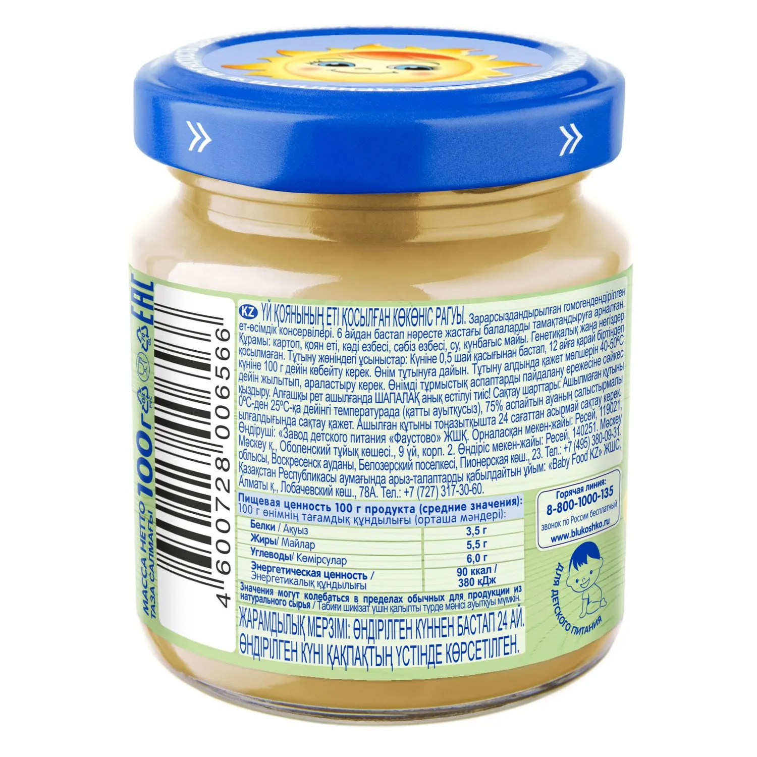 Срок хранения: Закрытая баночка хранится при температуре от 0°С до+25°С (без резких колебаний) и относительной влажности воздуха не более 75% в течение 24 месяцев с даты изготовления. Содержимое открытой баночки может храниться в холодильнике не более 24 часов.