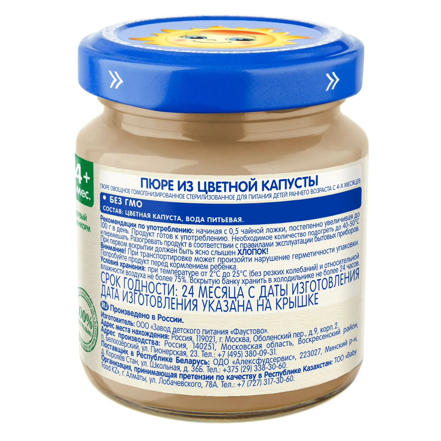 Пюре Бабушкино лукошко Цветная капуста для питания детей с4месяцев. Рекомендуется использовать в качестве первого прикорма малыша.