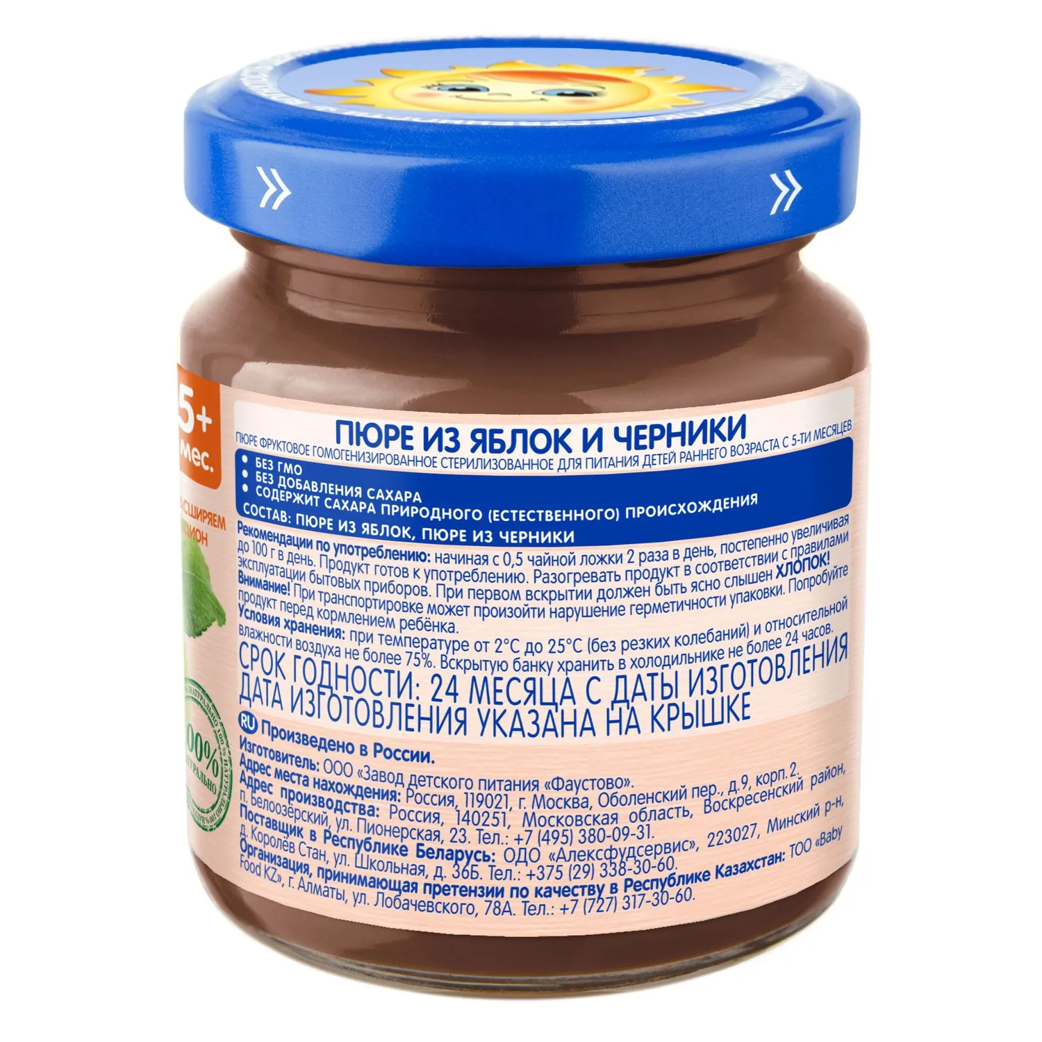 Пюре Бабушкино лукошко Яблоко-черника для питания детей с5месяцев. Отсутствие сахара в пюре соответствует последним рекомендациям детских диетологов и позволяет сформировать привычки здорового питания с самого раннего возраста.