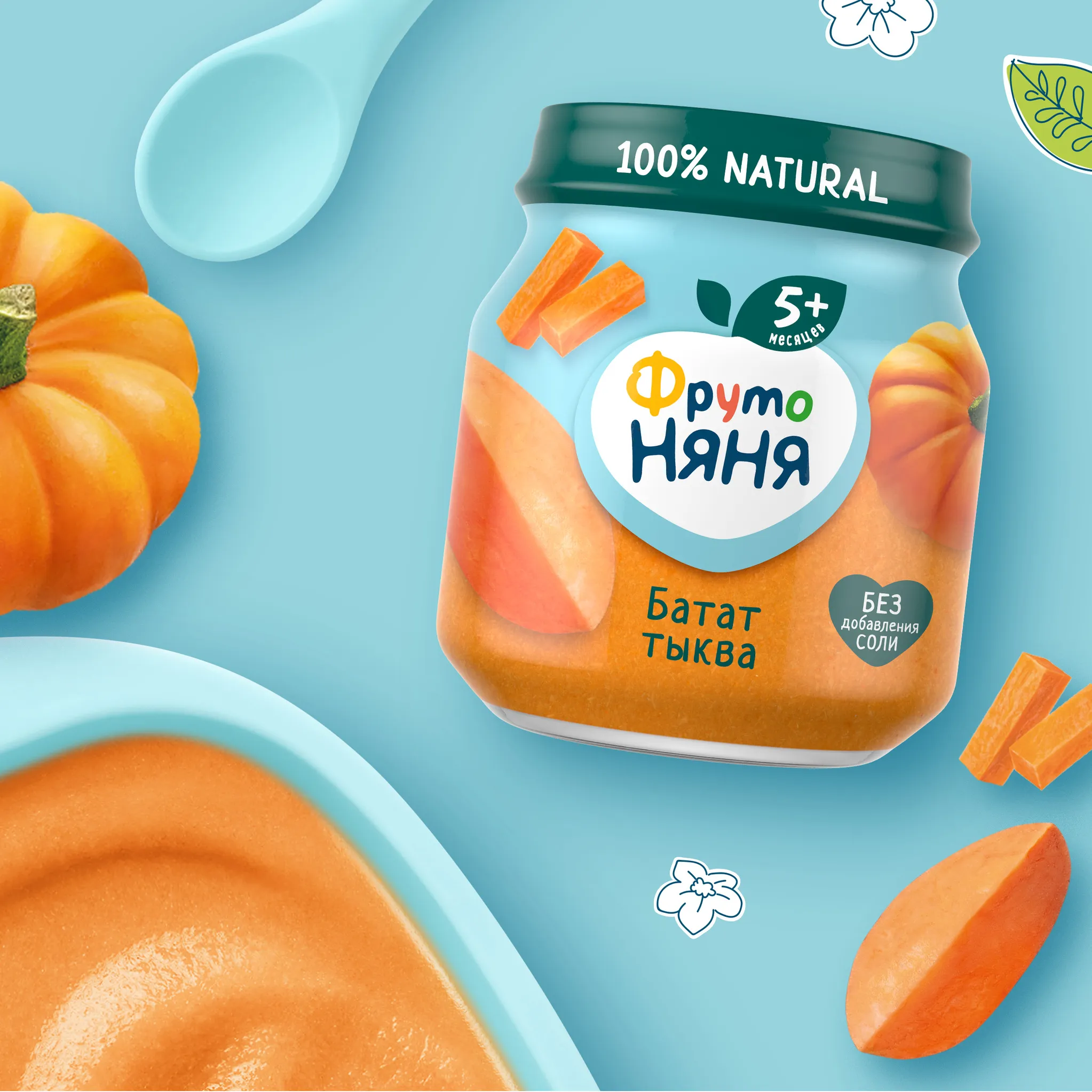 Овощное пюре из батата с тыквой от «ФрутоНяни» – это гармоничное сочетание пользы и вкуса овощей в одной баночке.