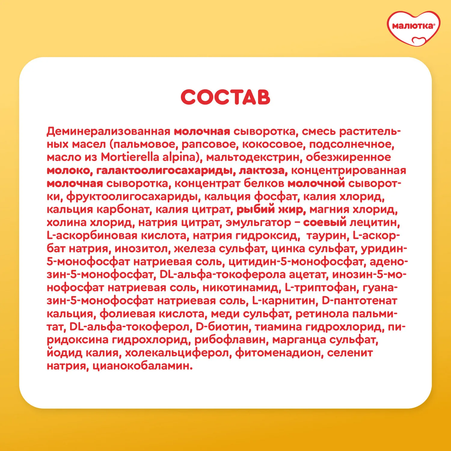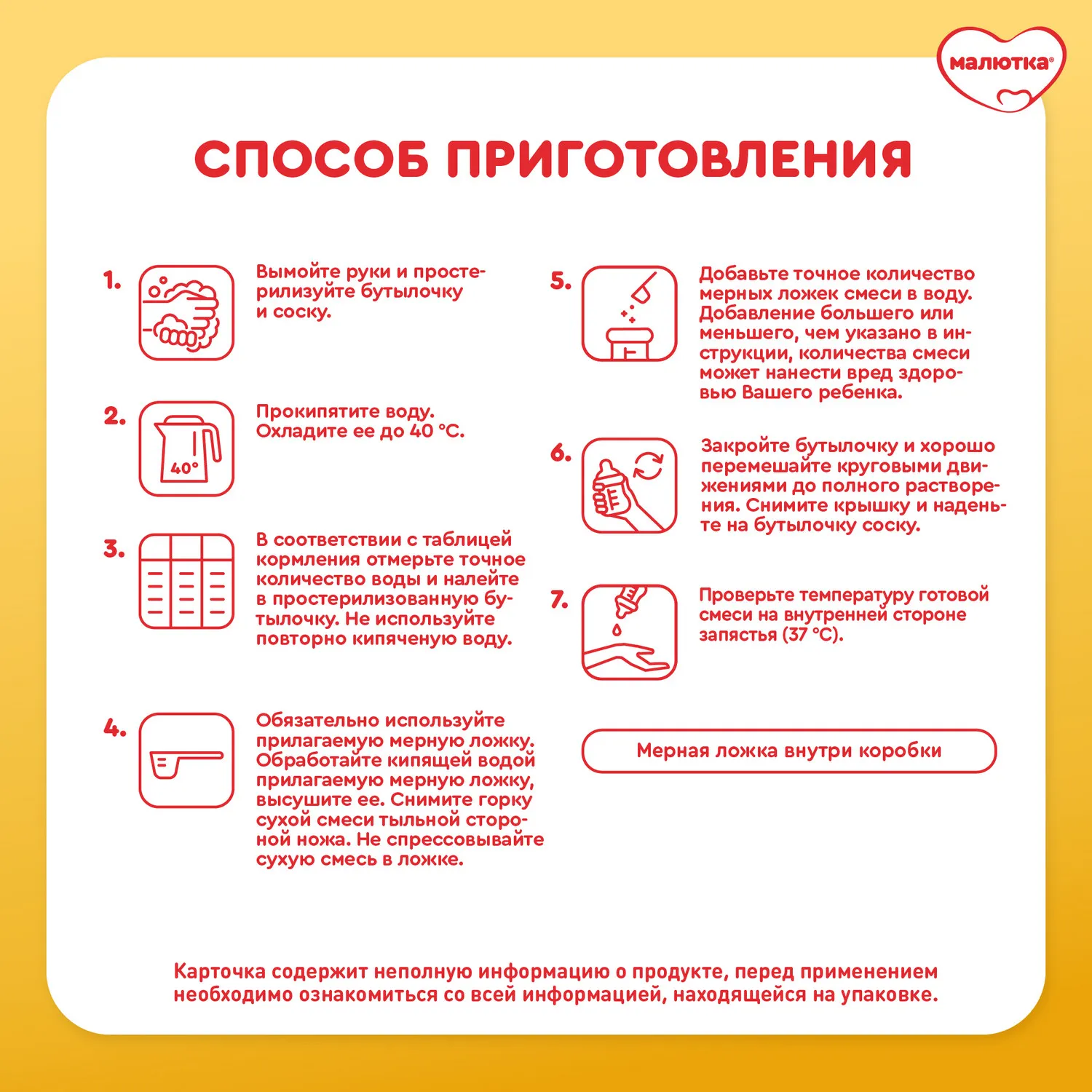 Малютка 1 – сухая молочная смесь для кормления детей с рождения (от 0 до 6 месяцев).