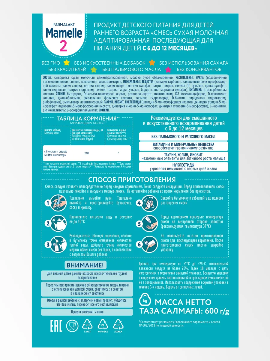 В итоге смесь MAMELLE станет надежным помощником для тех семей, где ценят здоровье ребенка и хотят обеспечить ему комфортное начало жизни с хорошим питанием после периода грудного вскармливания.