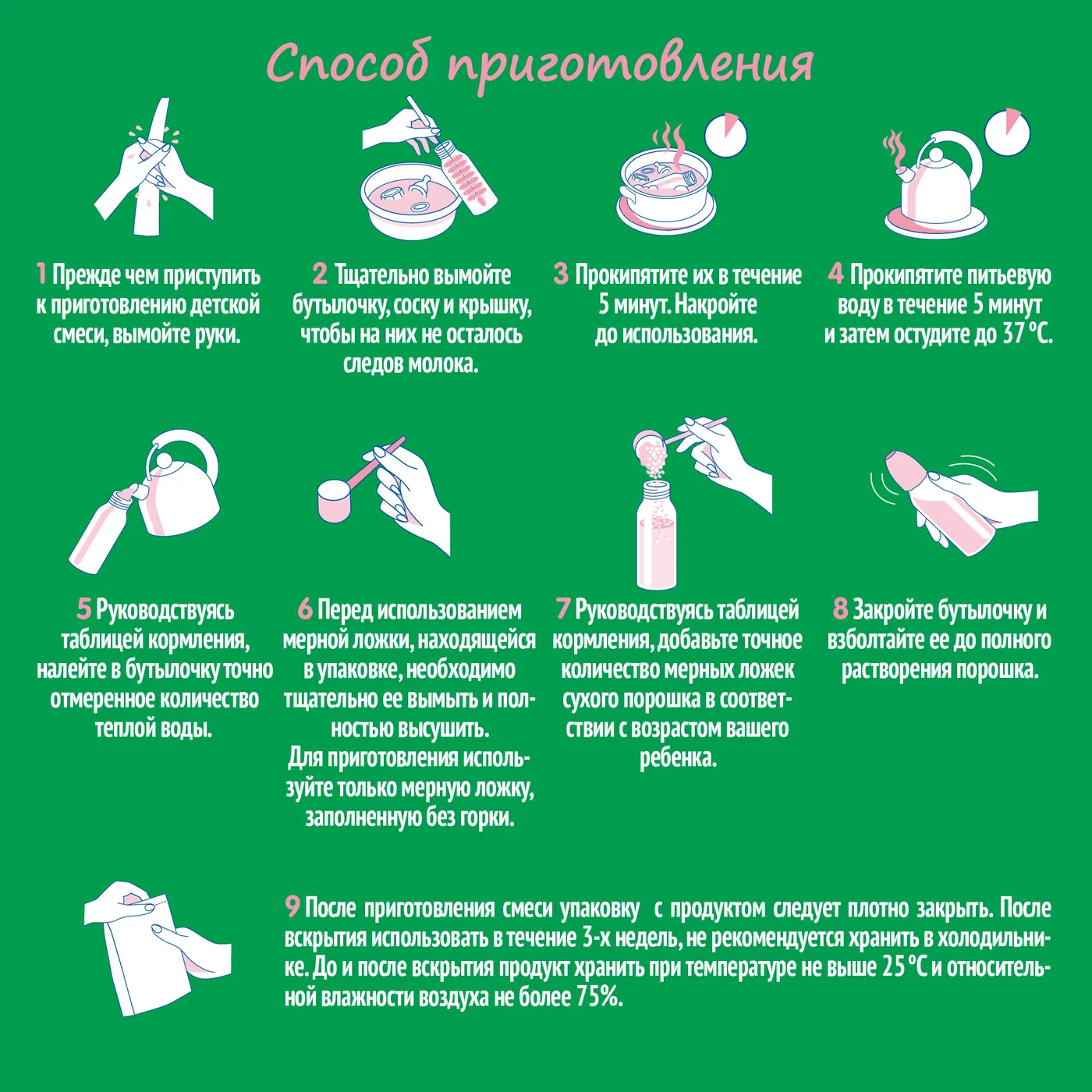 ВАЖНОЕ ЗАМЕЧАНИЕ. Мы считаем, что грудное вскармливание является идеальным началом питания для младенцев и полностью поддерживаем рекомендацию Всемирной организации здравоохранения об исключительно грудном вскармливании в течение первых шести месяцев жизни с последующим введением адекватного питательного прикорма вместе с продолжением грудного вскармливания до двухлетнего возраста. Мы также понимаем, что грудное вскармливание не всегда возможно для родителей, поэтому рекомендуем вам поговорить со своим лечащим врачом о том, как кормить ребенка, и получить совет о том, когда вводить прикорм. Если вы решите не кормить грудью, помните, что такое решение может быть трудно отменить и оно имеет социальные и финансовые последствия. Введение частичного кормления из бутылочки сократит количество грудного молока. Детскую смесь всегда следует готовить, использовать и хранить как указано на этикетке, чтобы избежать риска для здоровья ребенка.