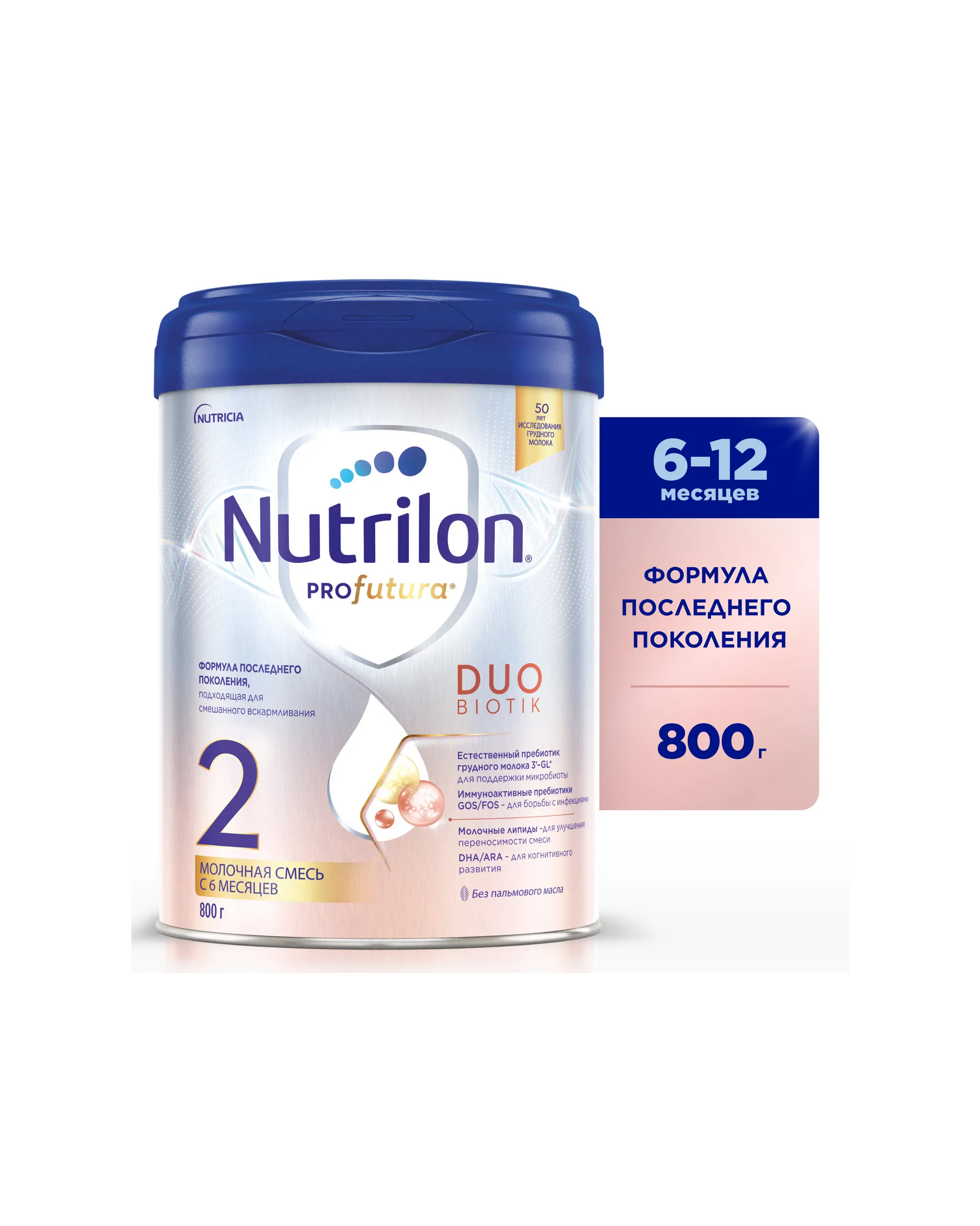 Более 50 лет научных исследований Nutricia позволили создать уникальное сочетание BIO-активных компонентов, максимально приближенных к олигосахаридам грудного молока, которое легло в основу формулы последнего поколения Nutrilon Profutura Duobiotik 2. Эта детская сухая молочная смесь оптимально сочетается с грудным молоком и подходит для детей от 6 до 12 месяцев. BIO-активные компоненты обеспечивают: