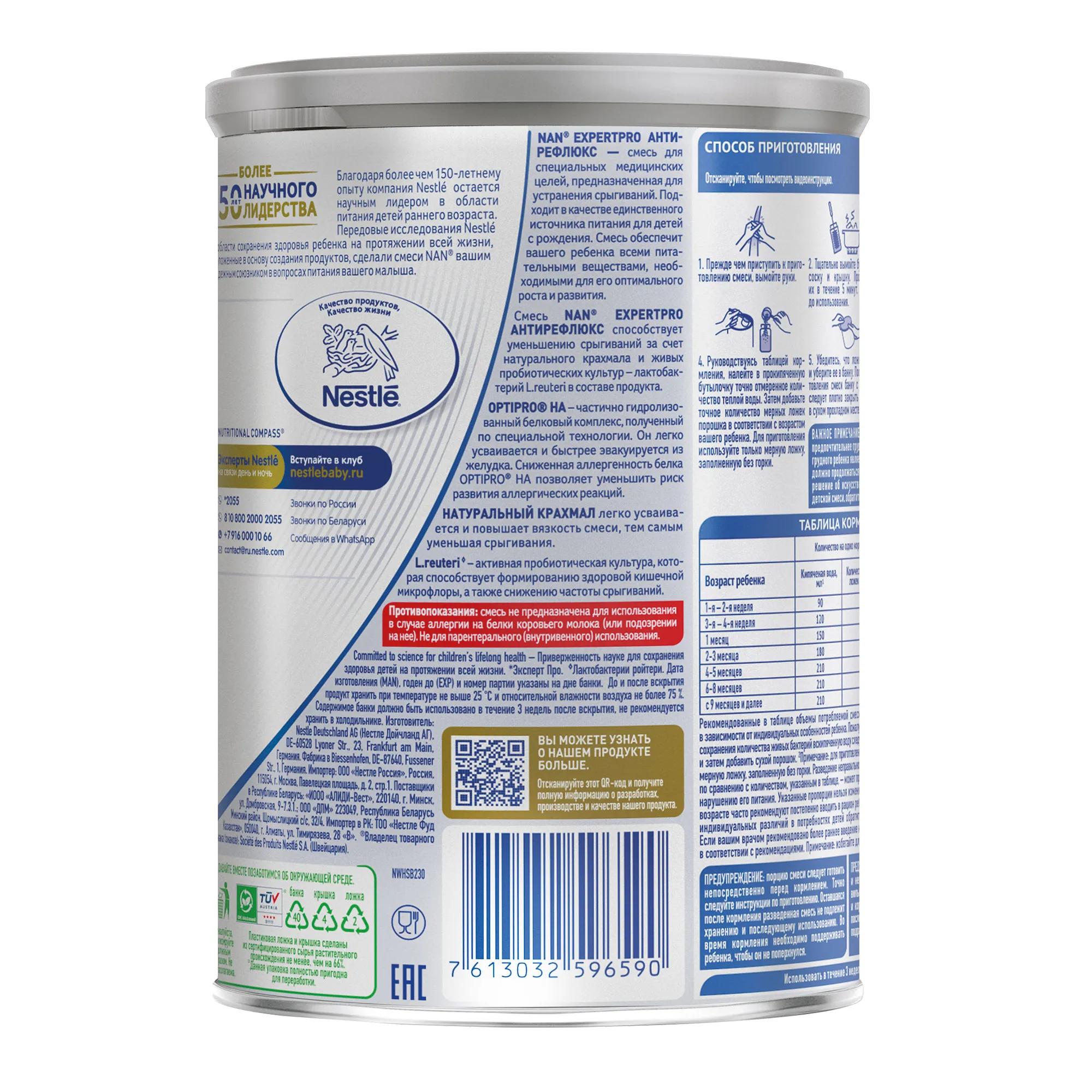 Для приготовления смеси необходимо использовать прилагаемую мерную ложку, заполненную без горки. Разведение неправильного количества порошка - большего или меньшего по сравнению с количеством, указанным в таблице - может привести к обезвоживанию организма ребенка или нарушению его питания. Указанные пропорции нельзя изменять без совета медицинского работника.