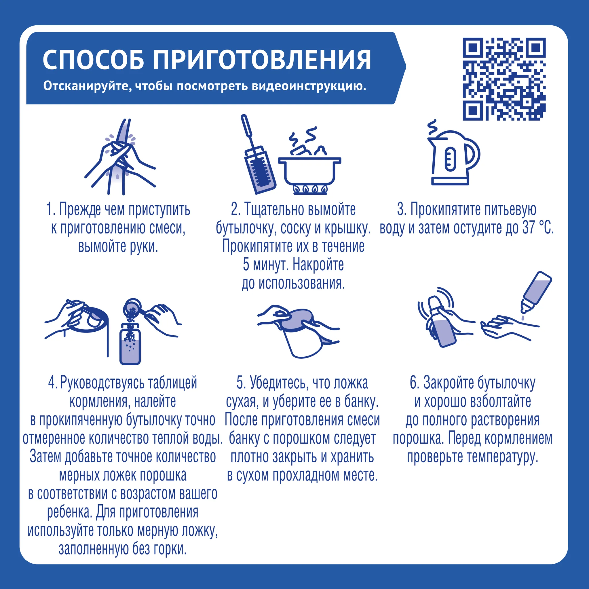 Смесь следует готовить непосредственно перед каждым кормлением. Точно следуйте инструкции. Оставшаяся после кормления разведенная смесь не подлежит хранению и последующему использованию. Во время кормления необходимо поддерживать ребенка, чтобы он не поперхнулся.