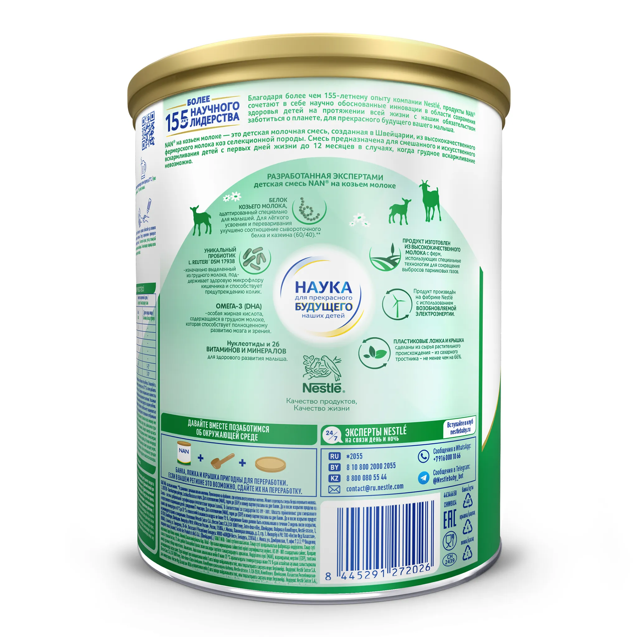 Смесь NAN® GOAT Milk содержит: БЕЛОК КОЗЬЕГО МОЛОКА, адаптированный специально для малышей для легкого усвоения и переваривания.