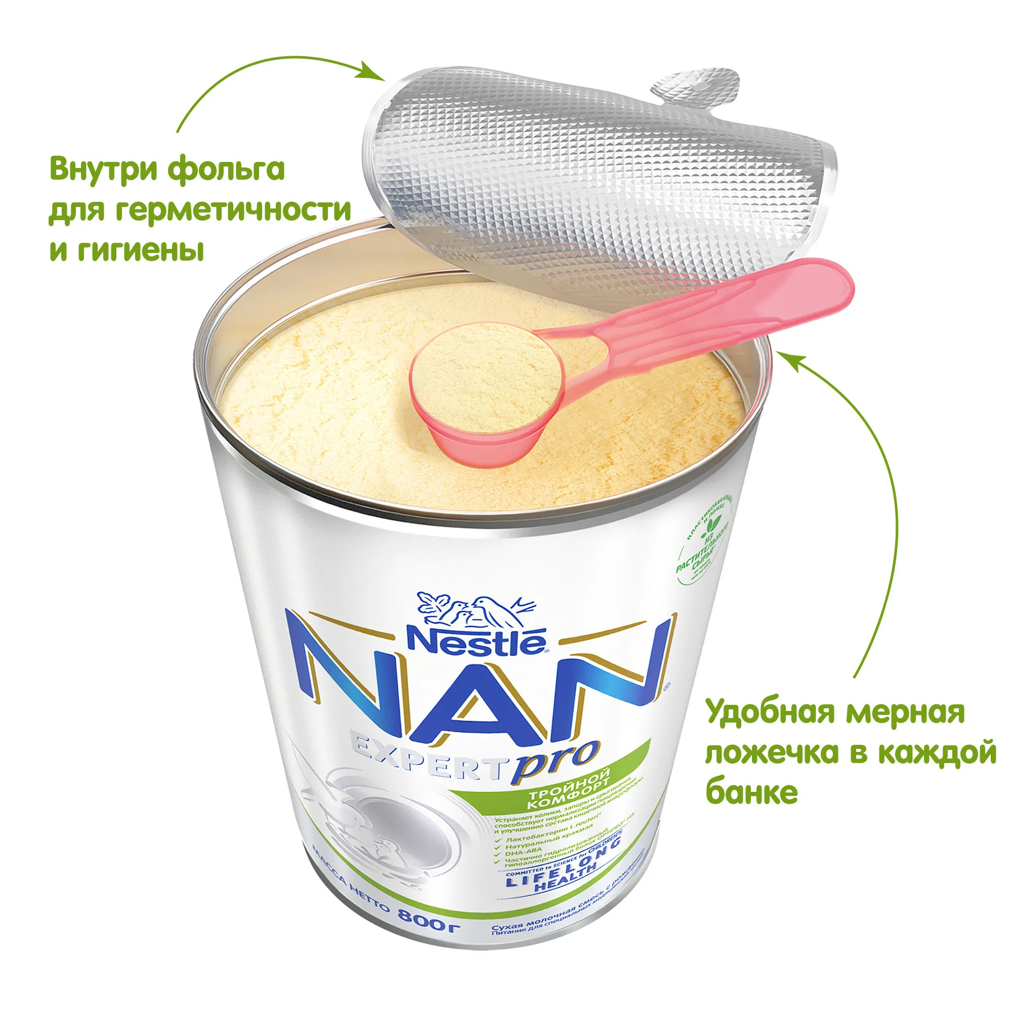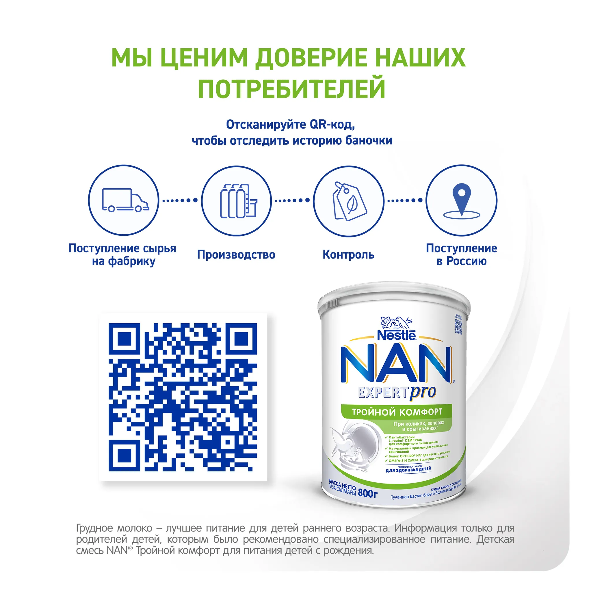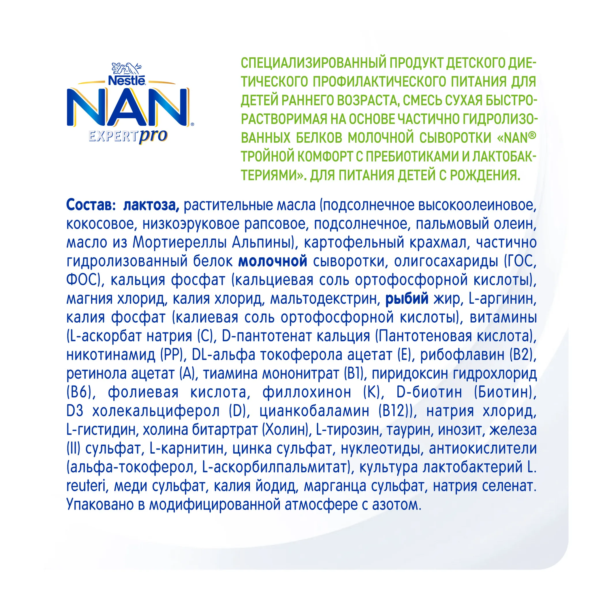 NAN® Тройной комфорт – питание, предназначенное для устранения основных симптомов функциональных расстройств пищеварения, способствует устранению младенческих запоров и срыгиваний, нормализует пищеварение, а также способствует улучшению состава кишечной микрофлоры.