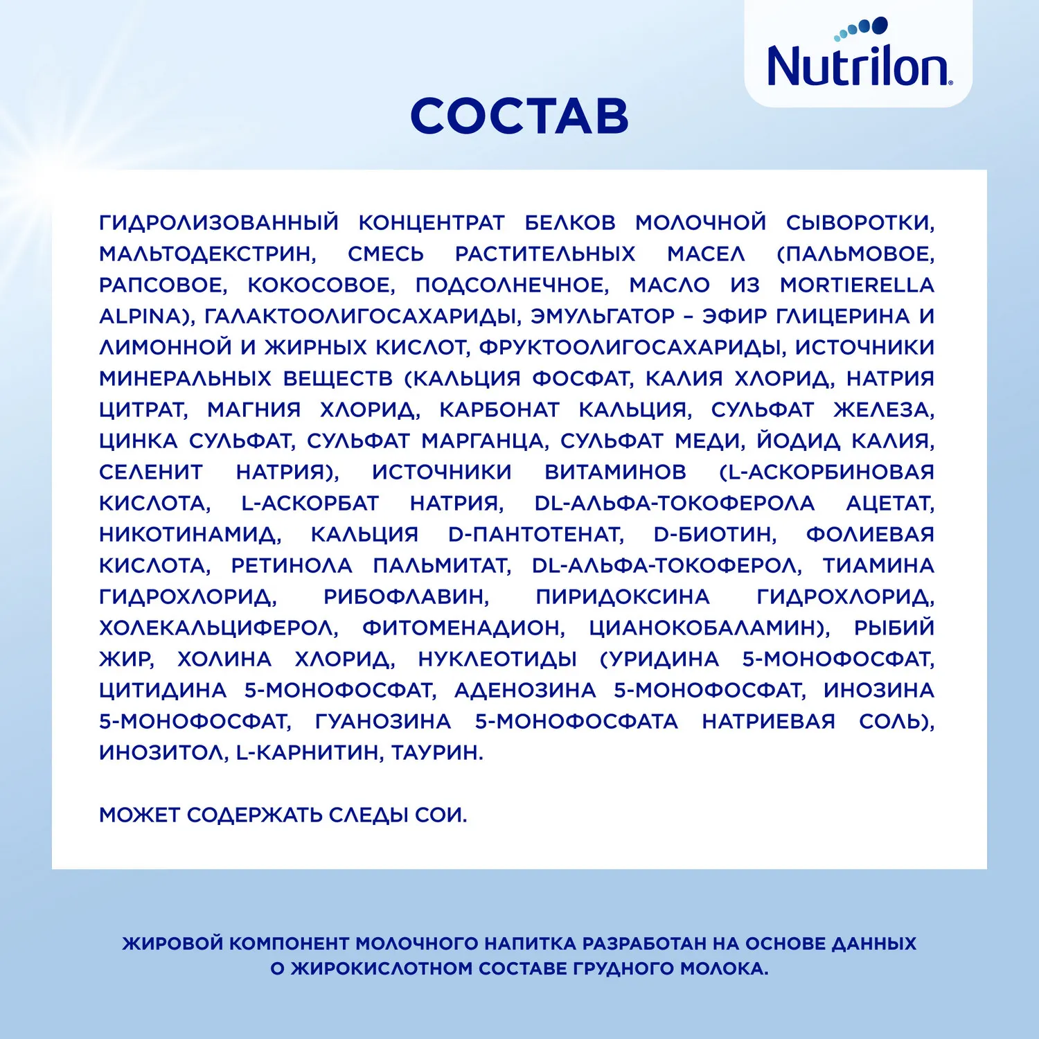 - улучшенный комплекс особых жирных кислот ARA/DHA, способствующий развитию его интеллекта.