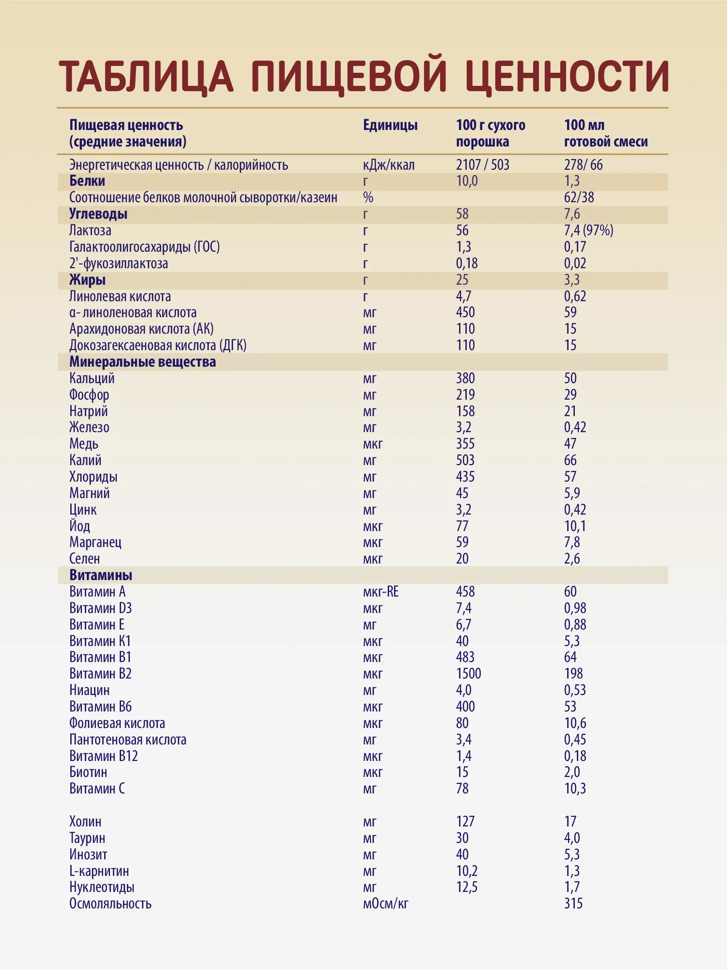 Priolac Gold 1 cодержит питательные вещества, естественно присутствующие в грудном молоке3,6-15: