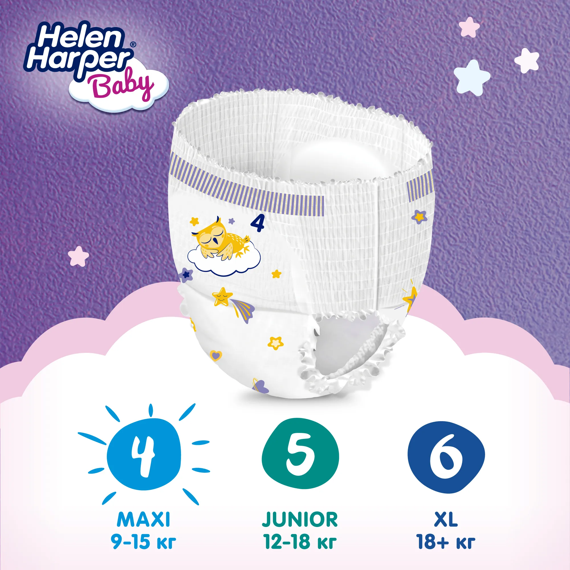 Ночные трусики Helen Harper Baby созданы специально для комфорта малышей во время сна. Впитывающие каналы обеспечивают сухость без протечек и провисания между ножек. Увеличенная впитываемость и мягкие материалы подарят комфорт на всю ночь. Трусики быстро и равномерно впитывают влагу, блокируя её внутри. Мягкие и эластичные поясок и резиночки вокруг ножек защищают от протеканий, не натирая кожу и не стесняя движений малыша. Дышащий внешний слой обеспечивает свободную циркуляцию воздуха. Индикатор влажности подскажет маме, когда пора менять трусики.