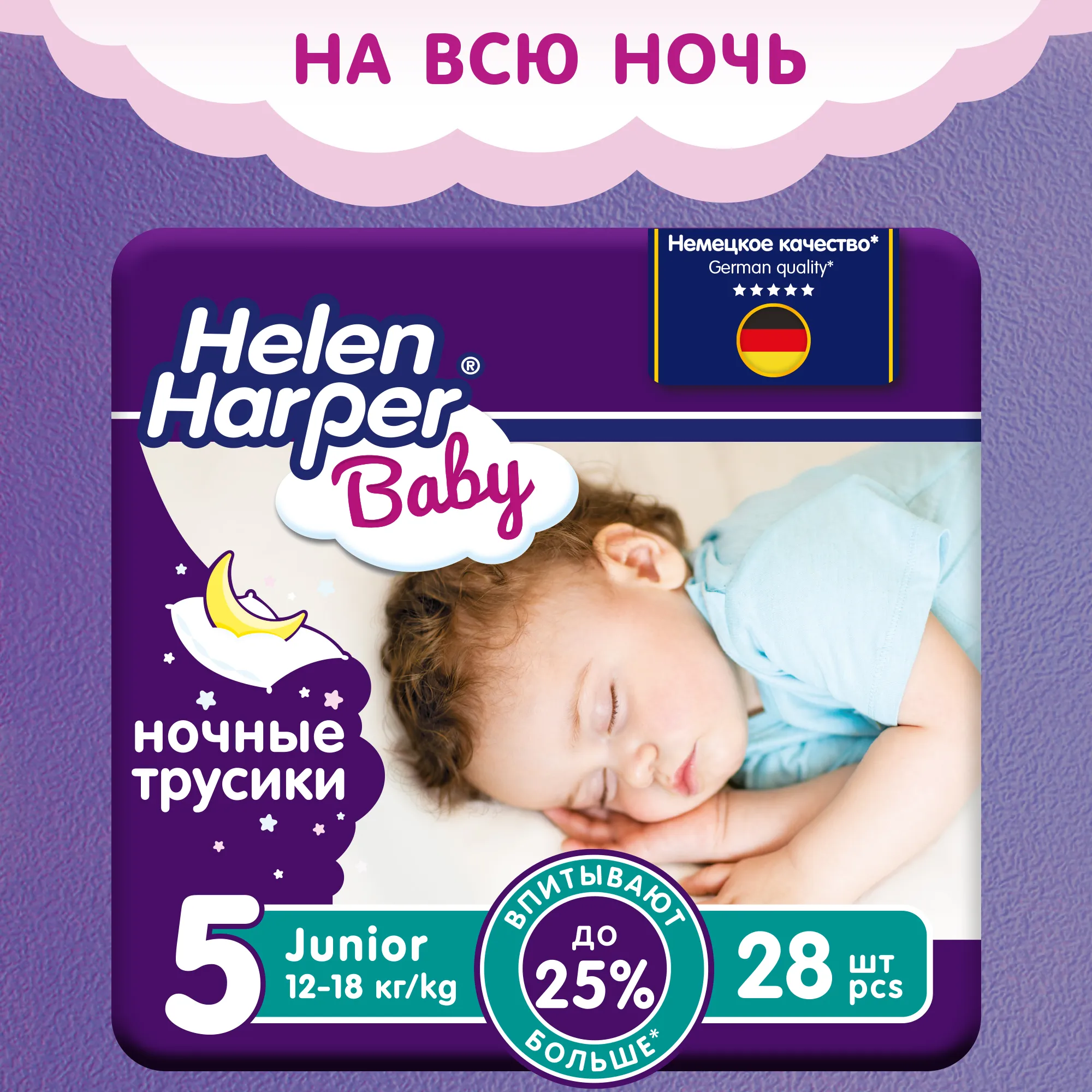 Ночные трусики Helen Harper Baby созданы специально для комфорта малышей во время сна. Впитывающие каналы обеспечивают сухость без протечек и провисания между ножек. Увеличенная впитываемость и мягкие материалы подарят комфорт на всю ночь. Трусики быстро и равномерно впитывают влагу, блокируя её внутри. Мягкие и эластичные поясок и резиночки вокруг ножек защищают от протеканий, не натирая кожу и не стесняя движений малыша. Дышащий внешний слой обеспечивает свободную циркуляцию воздуха. Индикатор влажности подскажет маме, когда пора менять трусики.
