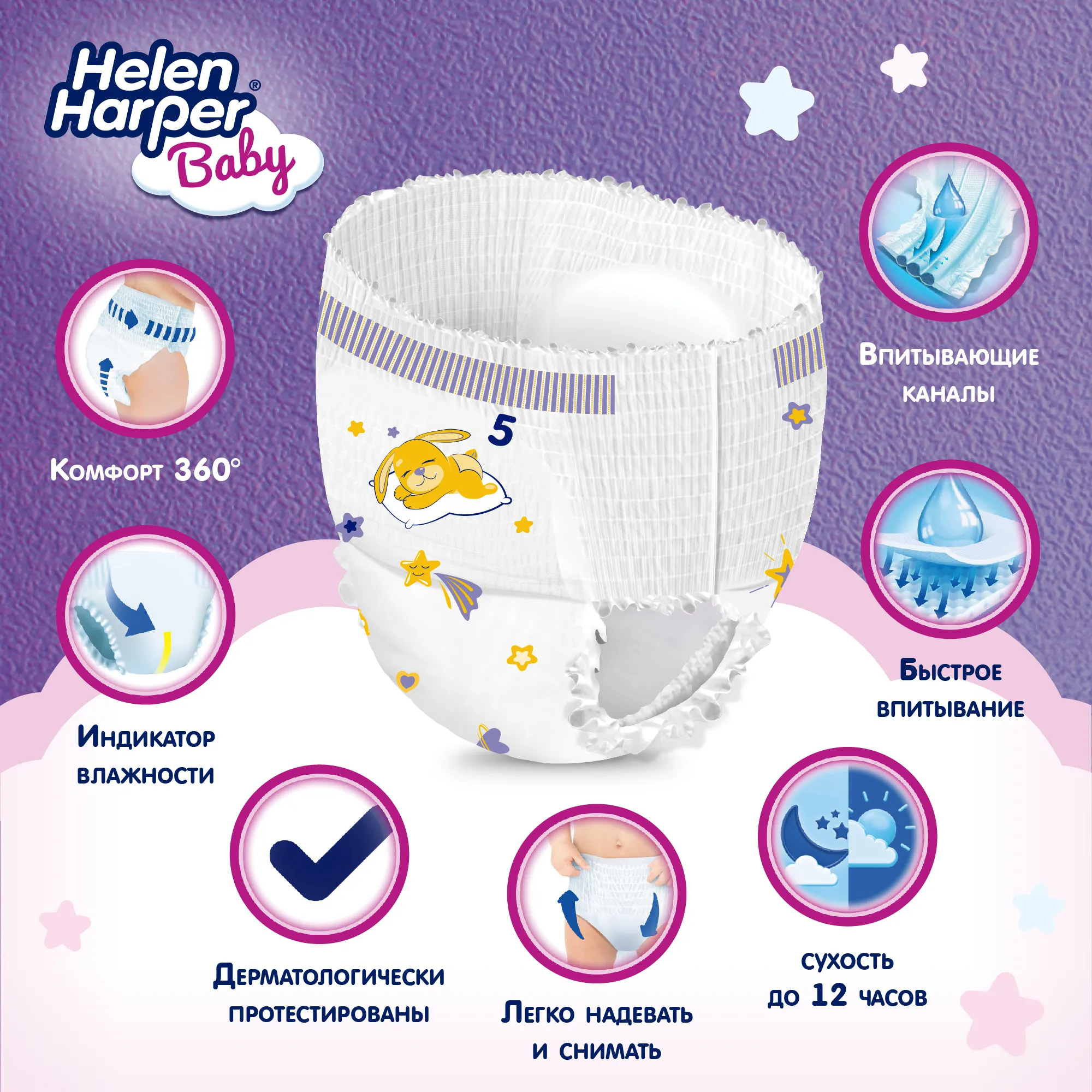 Трусики Helen Harper Baby не содержат отдушек и дерматологически протестированы.Основные характеристики: