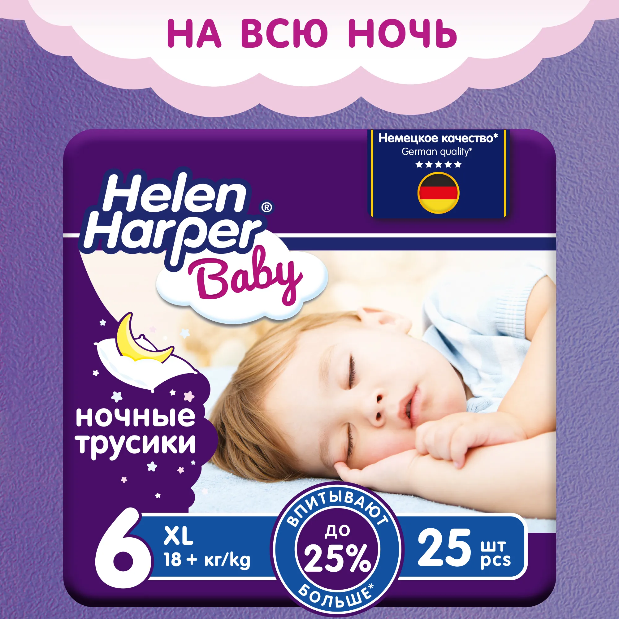 Ночные трусики Helen Harper Baby созданы специально для комфорта малышей во время сна. Впитывающие каналы обеспечивают сухость без протечек и провисания между ножек. Увеличенная впитываемость и мягкие материалы подарят комфорт на всю ночь. Трусики быстро и равномерно впитывают влагу, блокируя её внутри. Мягкие и эластичные поясок и резиночки вокруг ножек защищают от протеканий, не натирая кожу и не стесняя движений малыша. Дышащий внешний слой обеспечивает свободную циркуляцию воздуха. Индикатор влажности подскажет маме, когда пора менять трусики.