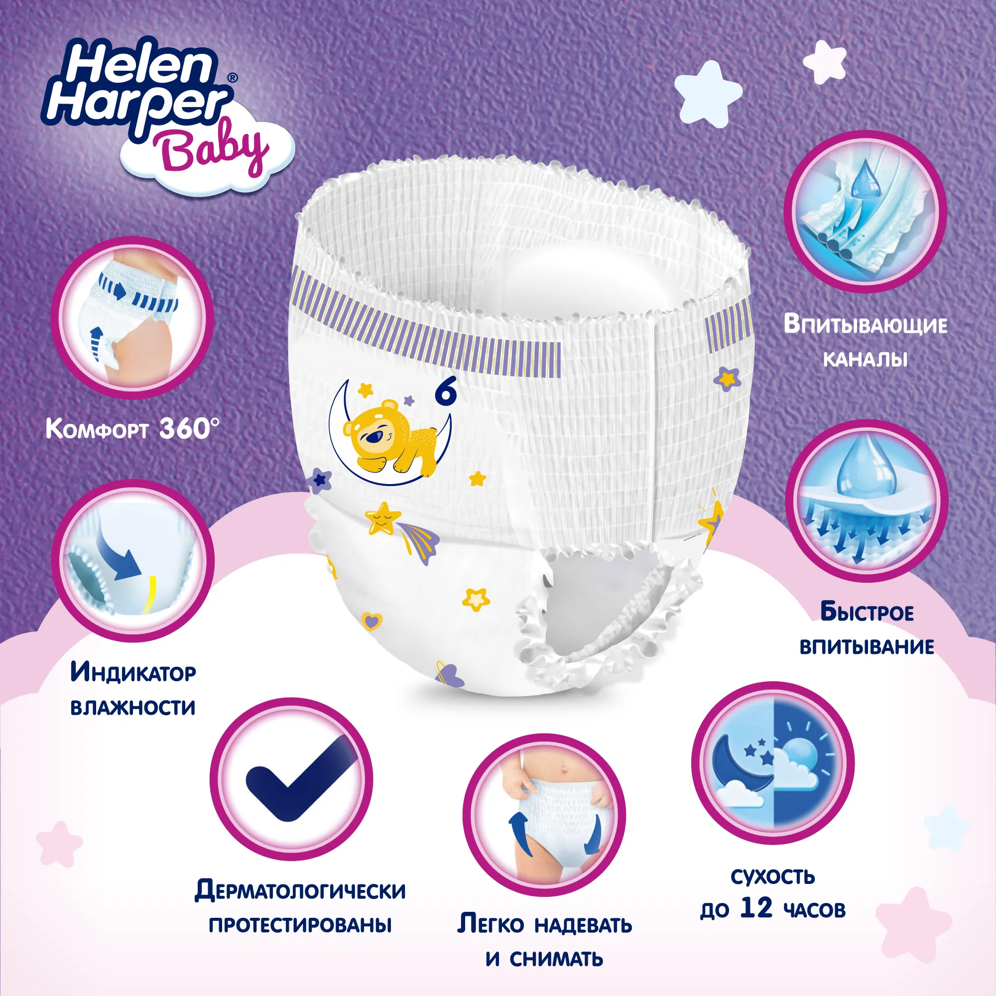 Трусики Helen Harper Baby не содержат отдушек и дерматологически протестированы.Основные характеристики: