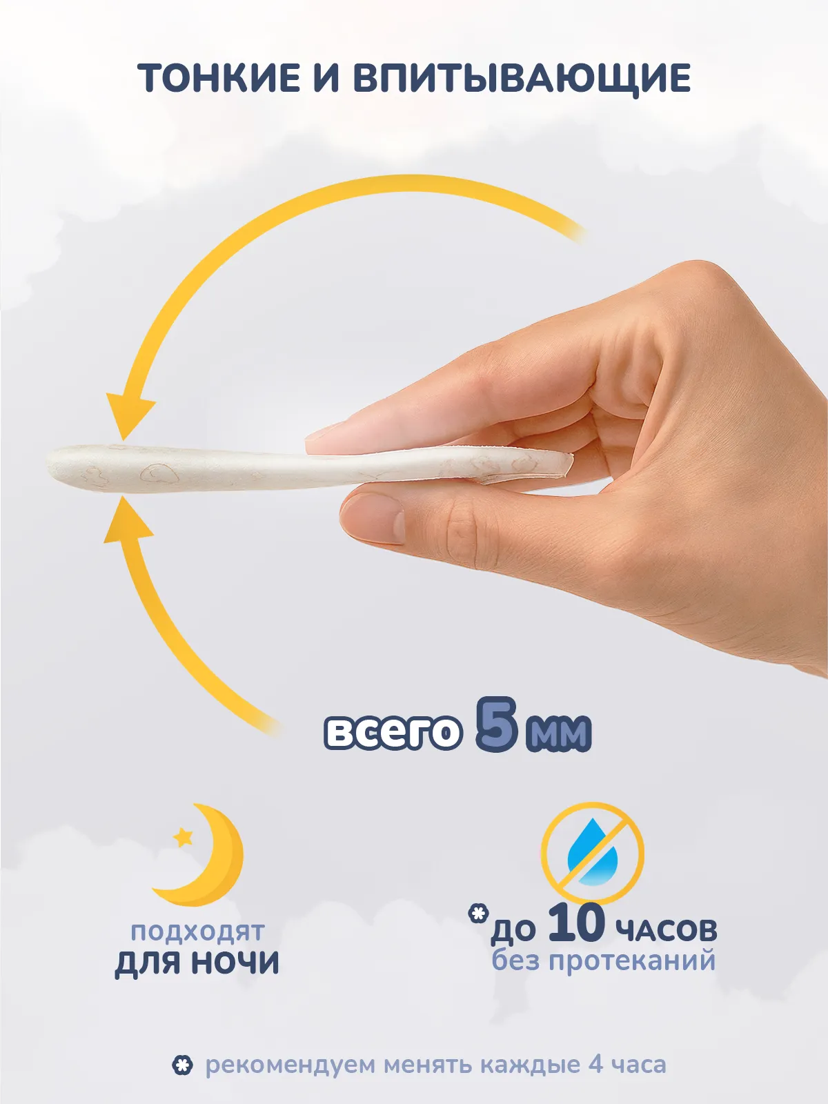 Q-shape форма трусиков создает дополнительную защиту от протекания у ножек и бедер, а также усиливает 3D эффект внутри, который защищает от боковых протеканий.